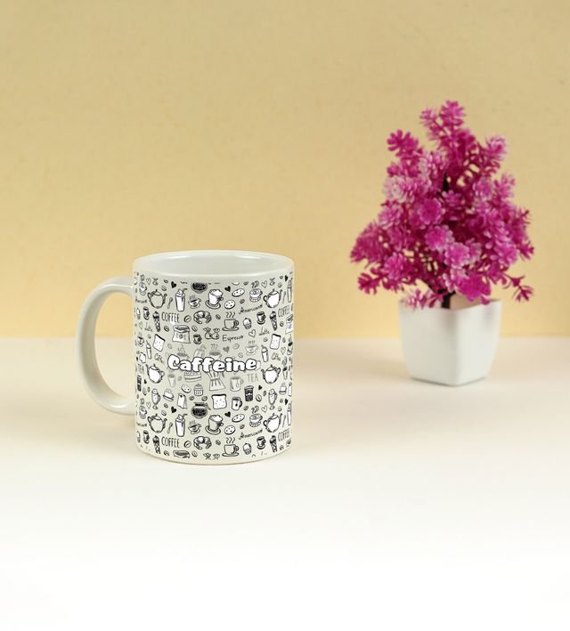Scribbled Cafe Icons with Caffeine Word Art Printed Coffee Mug 250ml