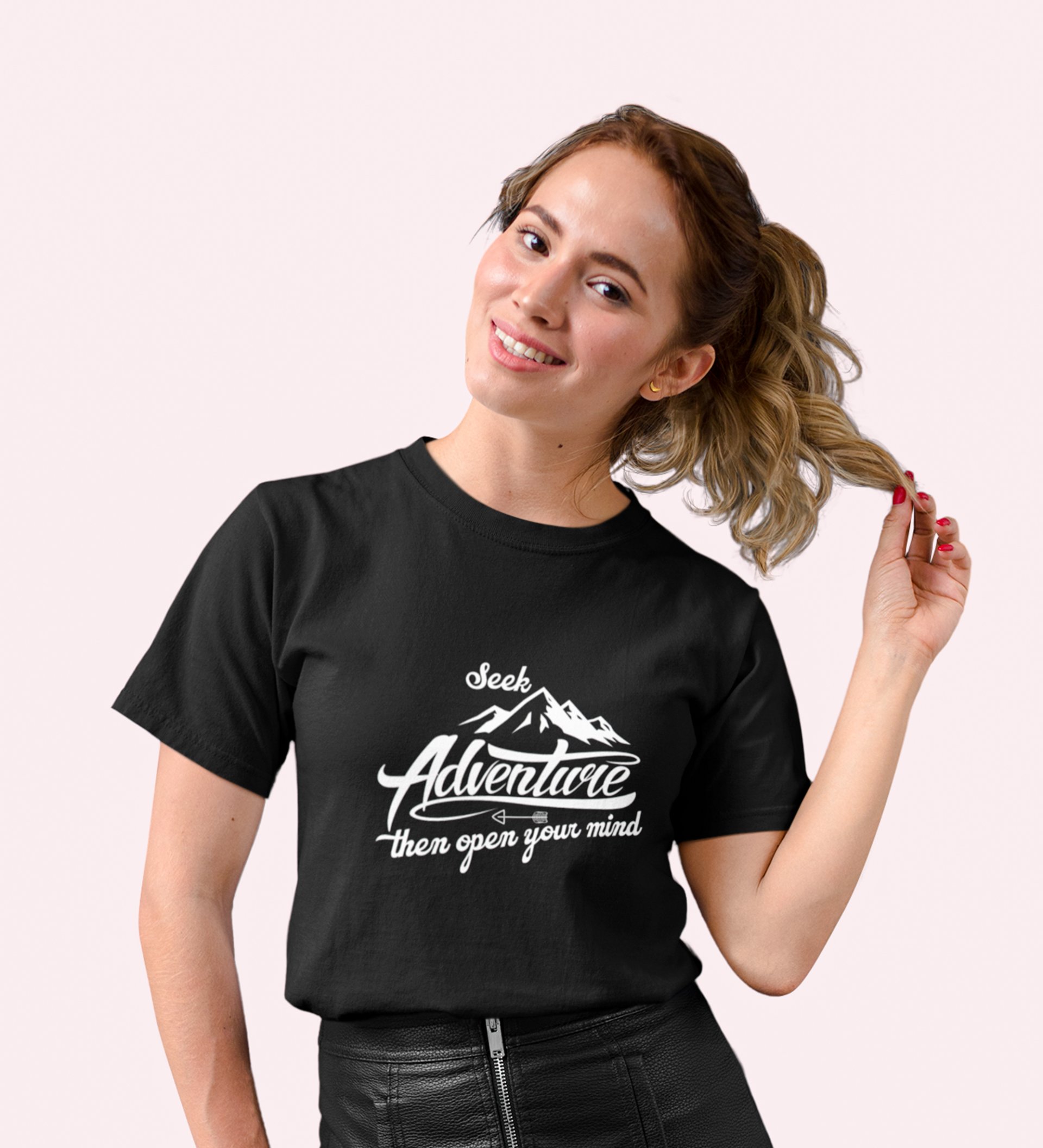 Adventure is an important part of our life. Everyone has their thoughts over their personal adventure journeys. So whats your take on it ?We have brought you tons of option to choose from, to express your inner Adventurer. Made of fabric, and designed for your comfort and style. Don't wait anymore to get your personal T-shirt.