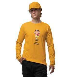 Self-Love : Printed (yellow) Full Sleeve T-Shirt For Singles (yellow) Full Sleeve T-Shirt For Singles With Print