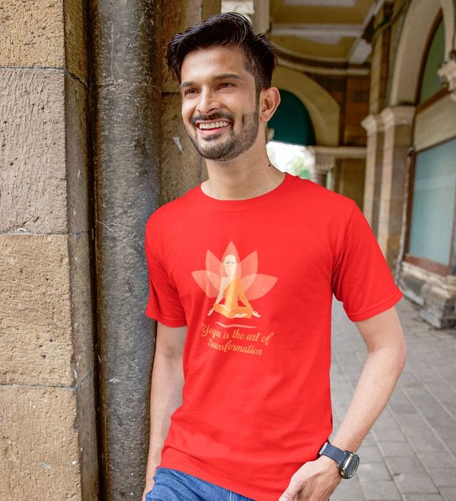 Self Transformation Red Round Neck Cotton Half Sleeved Men T-Shirt with Printed Graphics