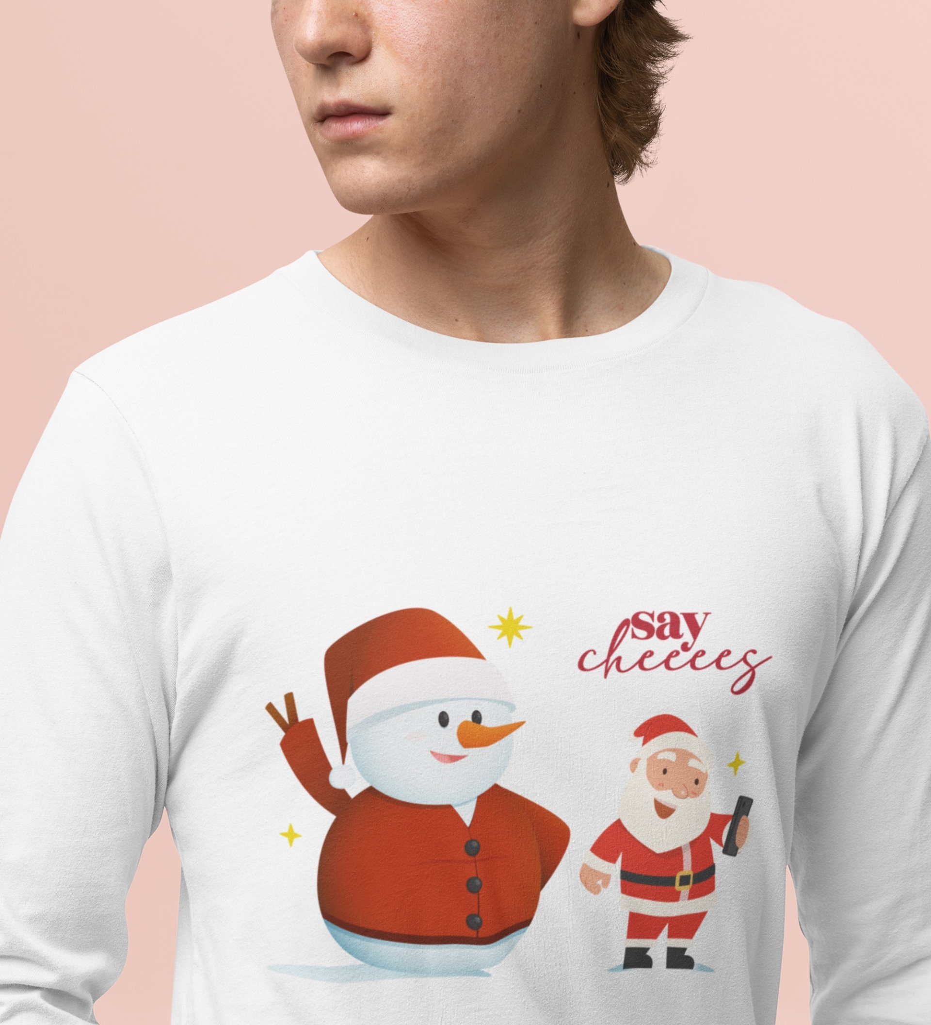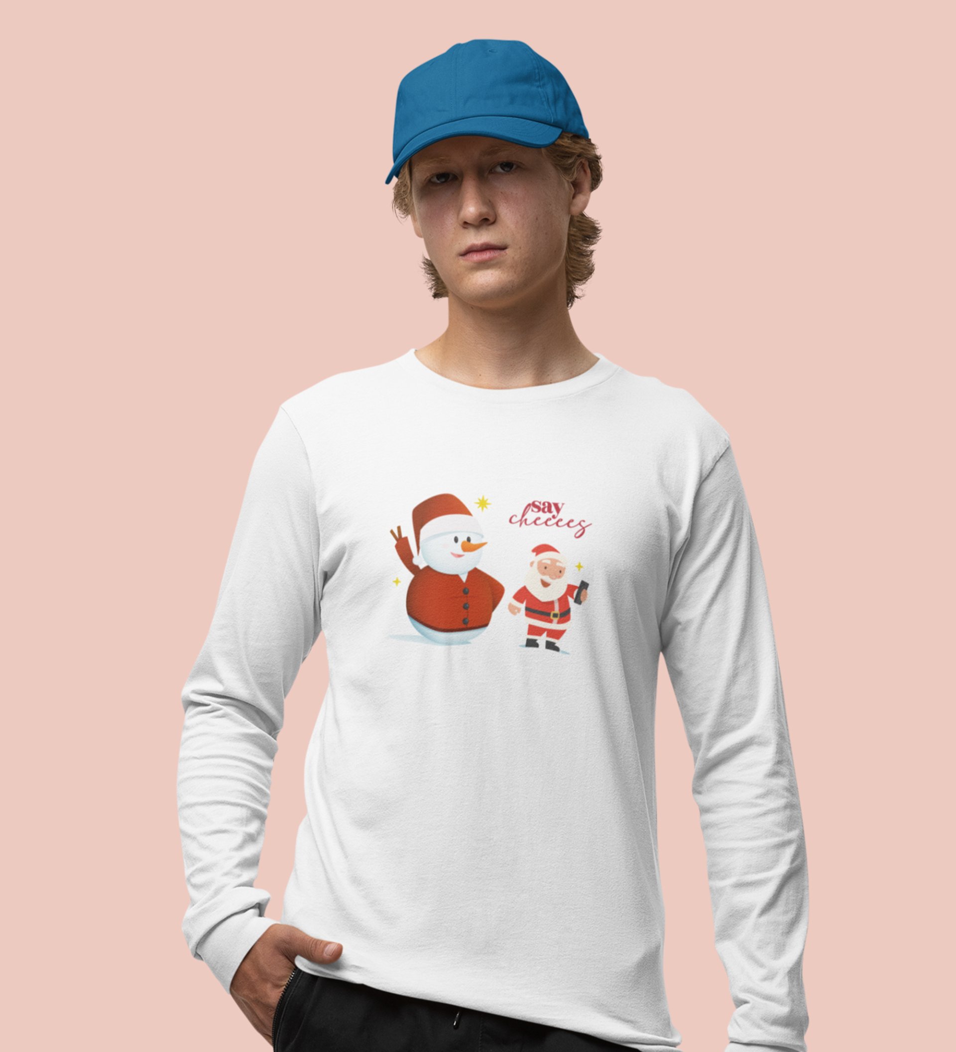 Selfie Santa: Cute DesignerFull Sleeve T-shirt White Elegant Gift For Kids