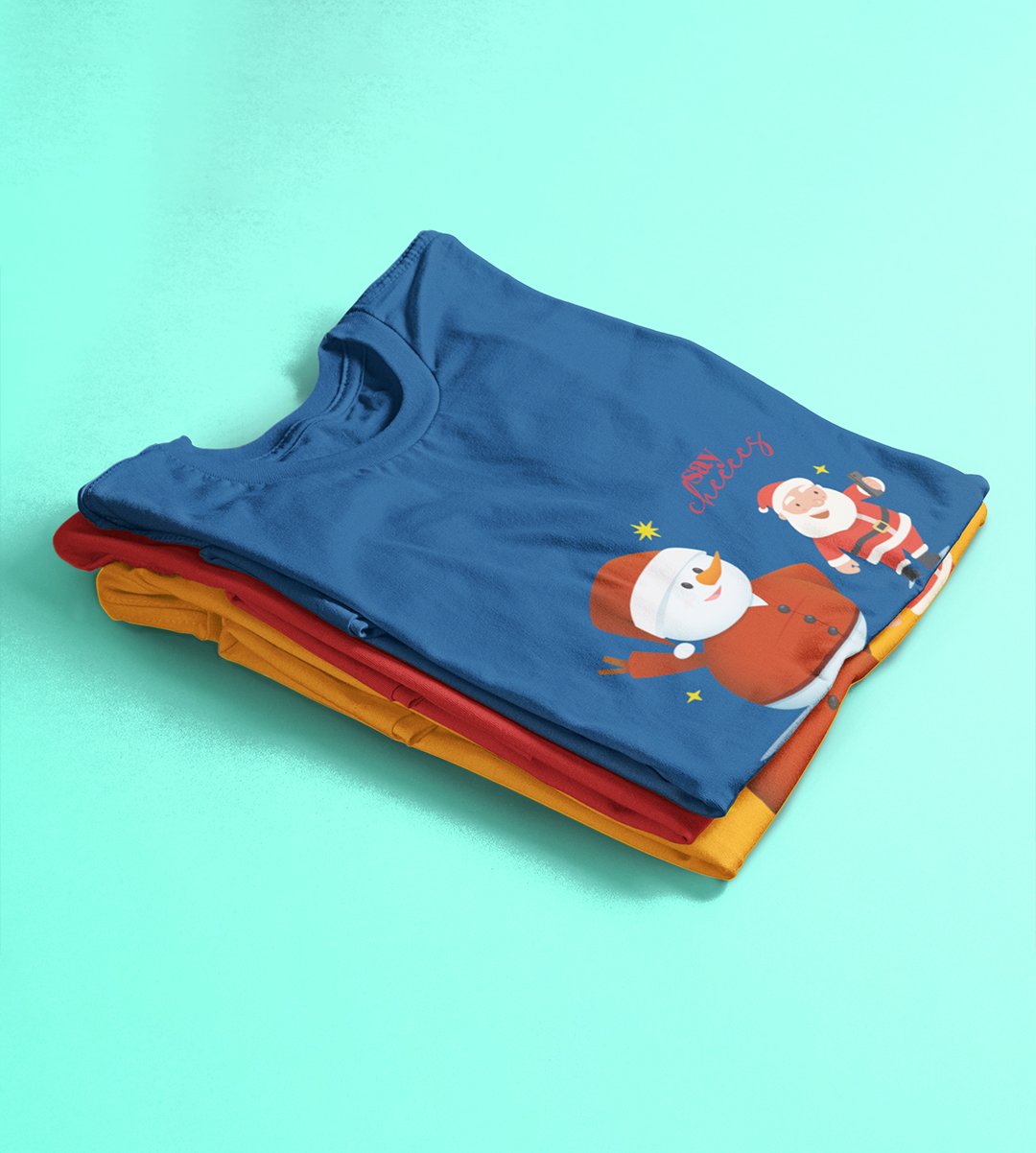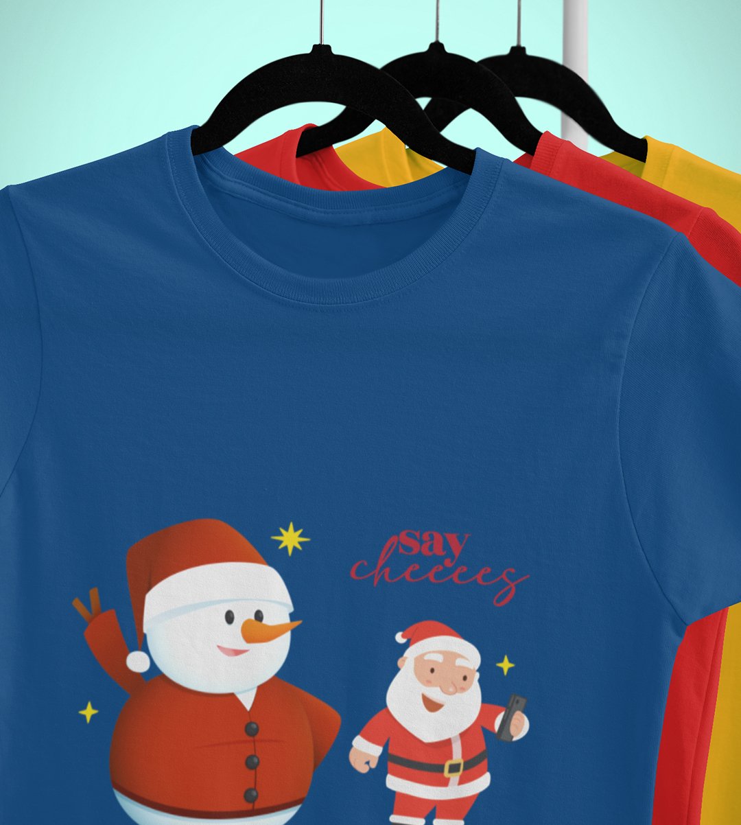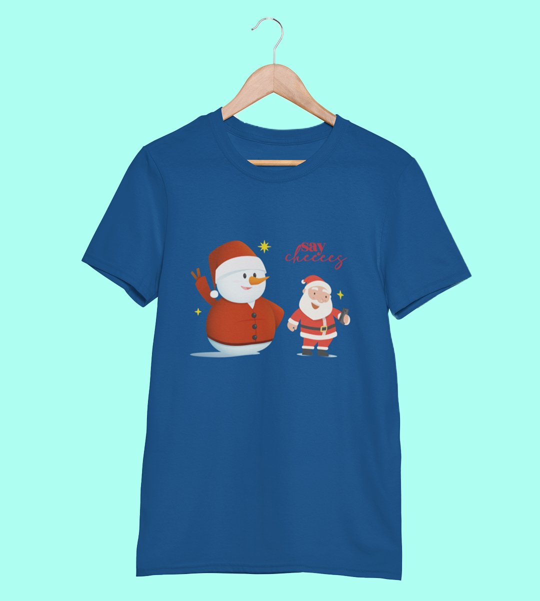 Selfie Santa: Cute Printed T-shirt (Blue) Elegant Gift For Kids