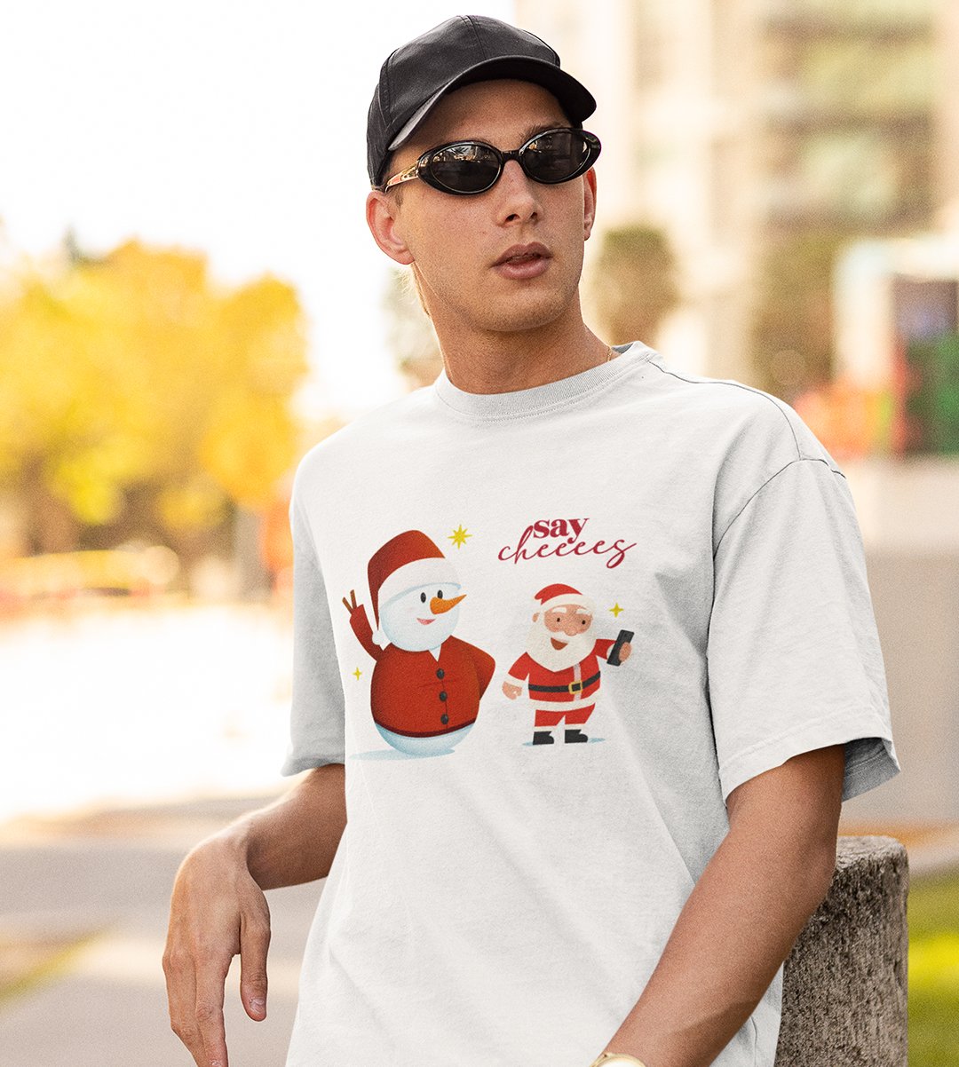 Selfie Santa: Cute Printed T-shirt (White) Elegant Gift For Kids