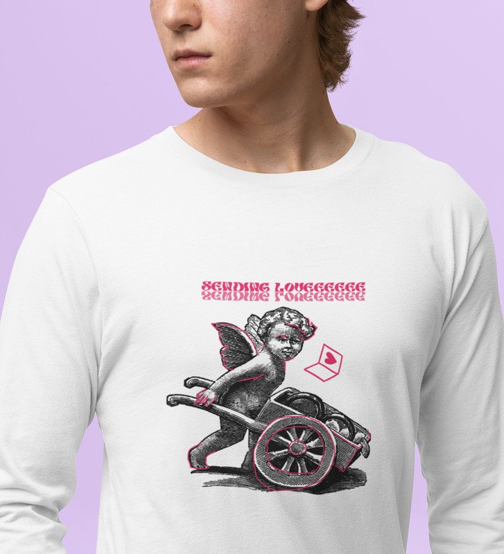 Sending Love: Printed (white) Full Sleeve T-Shirt For Singles
