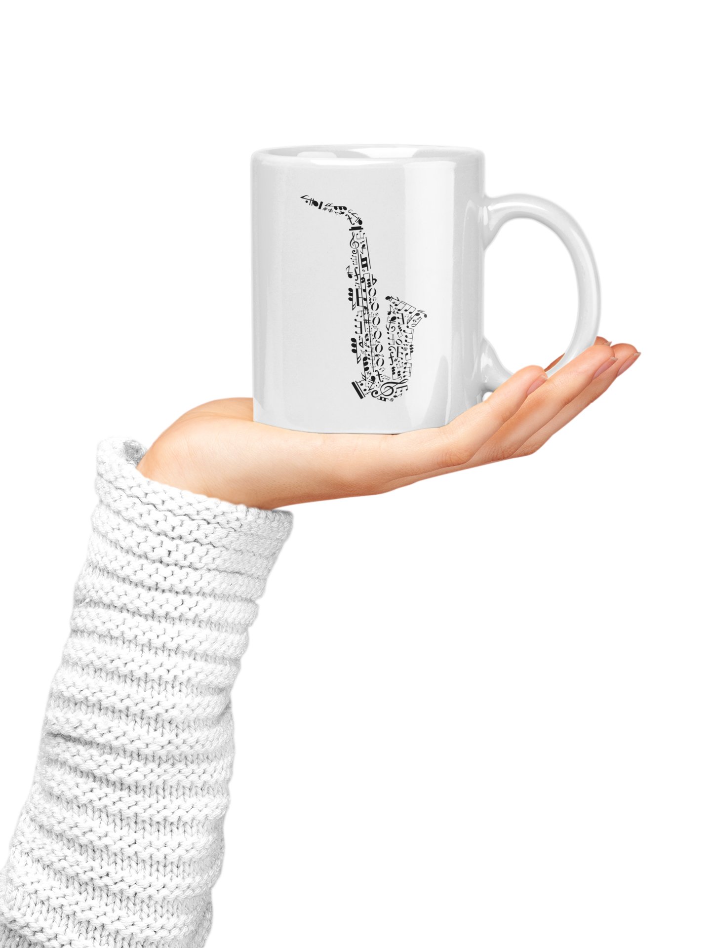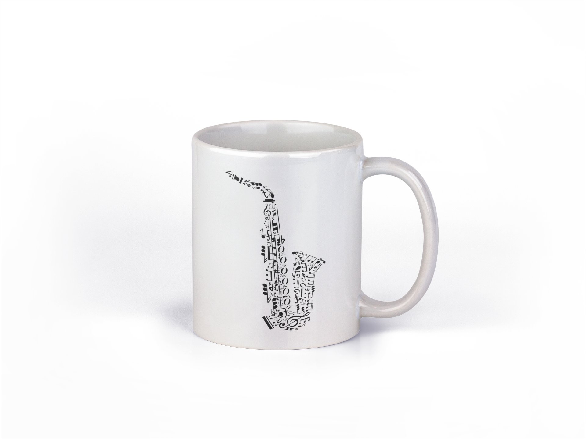 Sexaphone- music themed printed ceramic white coffee and tea mugs/ cups for music lovers