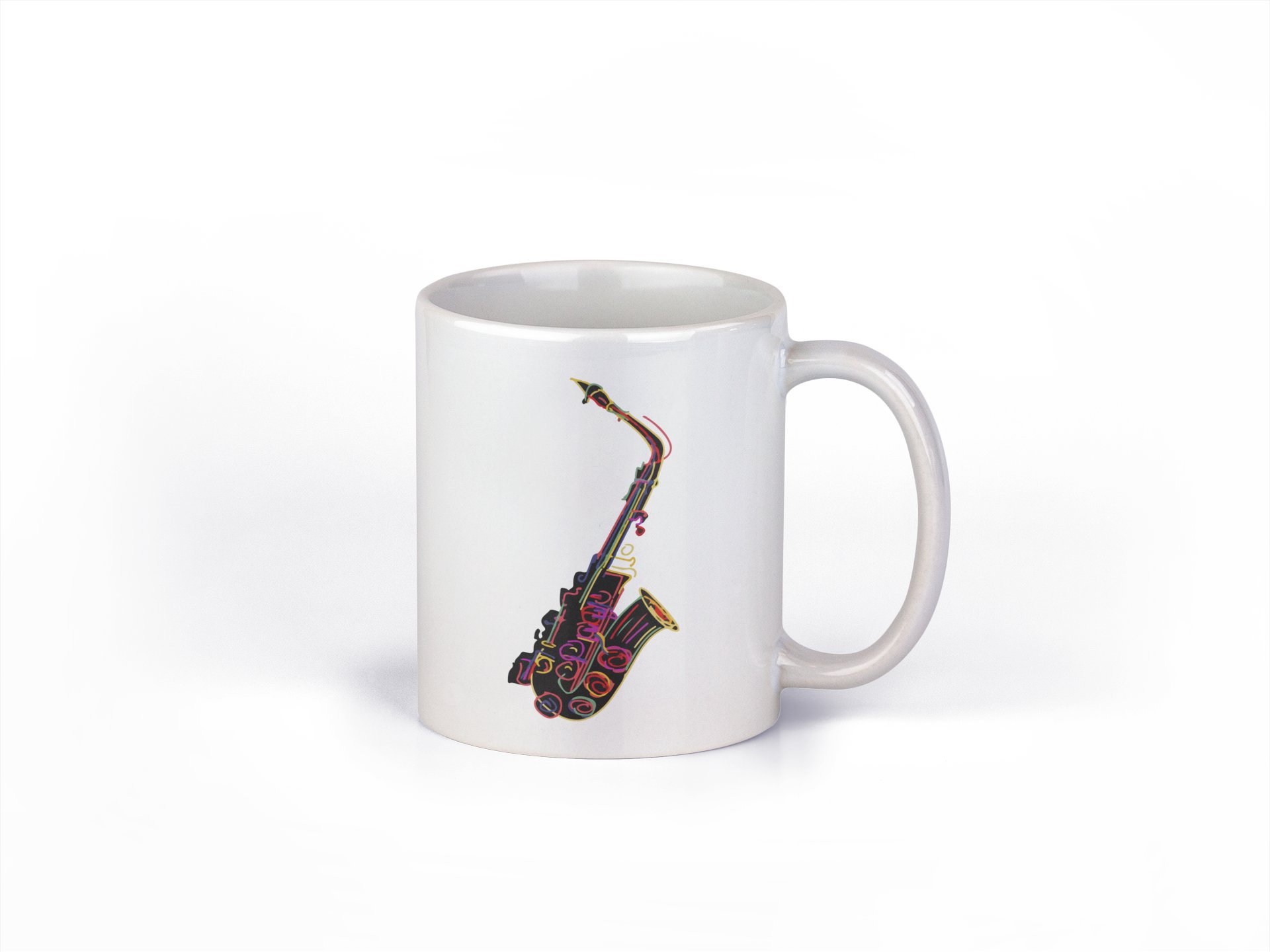 Sexaphone Colourfull illustration- music themed printed ceramic white coffee and tea mugs/ cups for music lovers