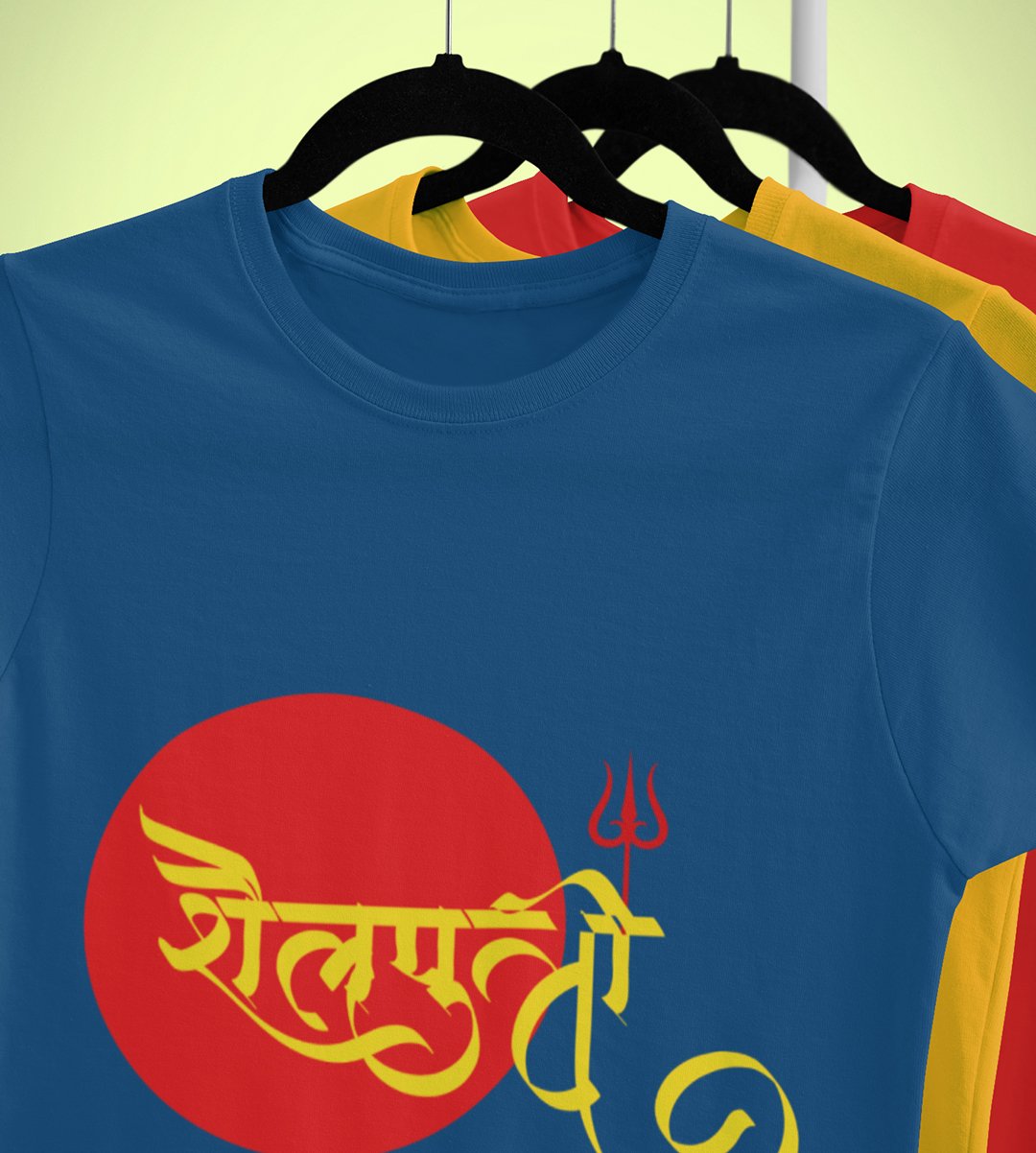 Shailaputri printed unisex adults round neck cotton half-sleeve blue tshirt specially for Navratri festival/ Durga puja