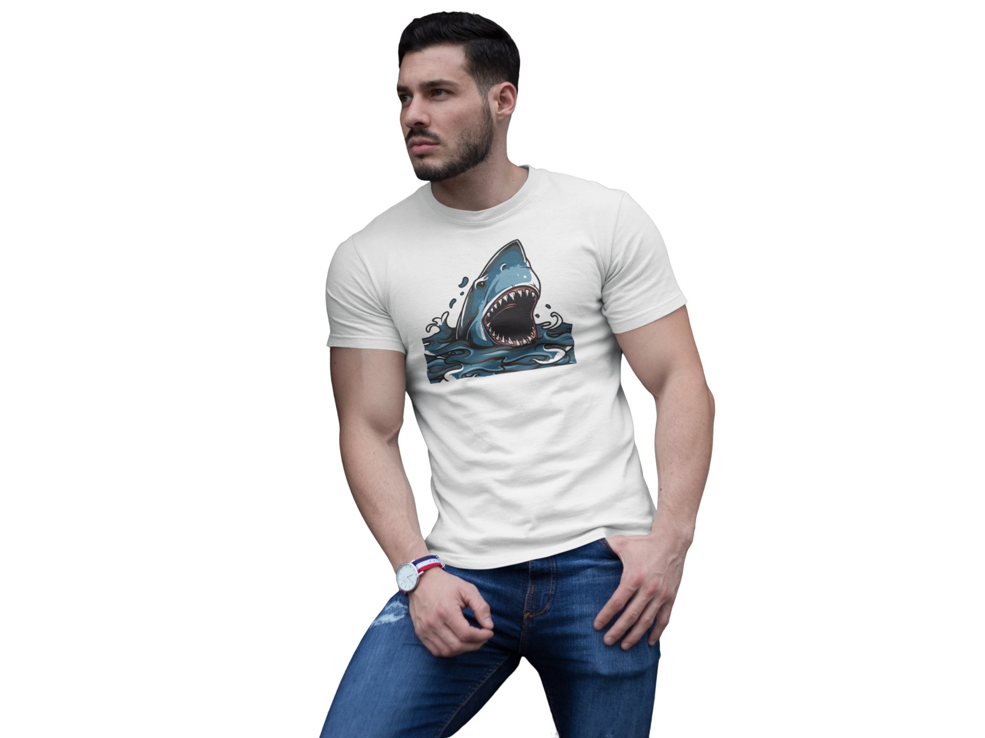 Shark attacking - White - printed T-shirts -Abstract Funny thoughtful creative illustrations - Men's stylish clothing - Cool tees for boys