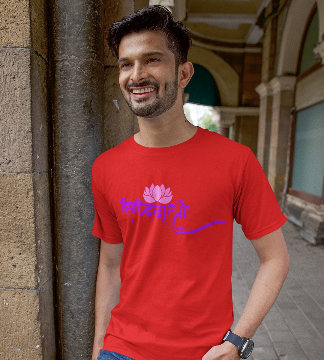 Shiddhidhatri printed unisex adults round neck cotton half-sleeve red tshirt specially for Navratri festival/ Durga puja