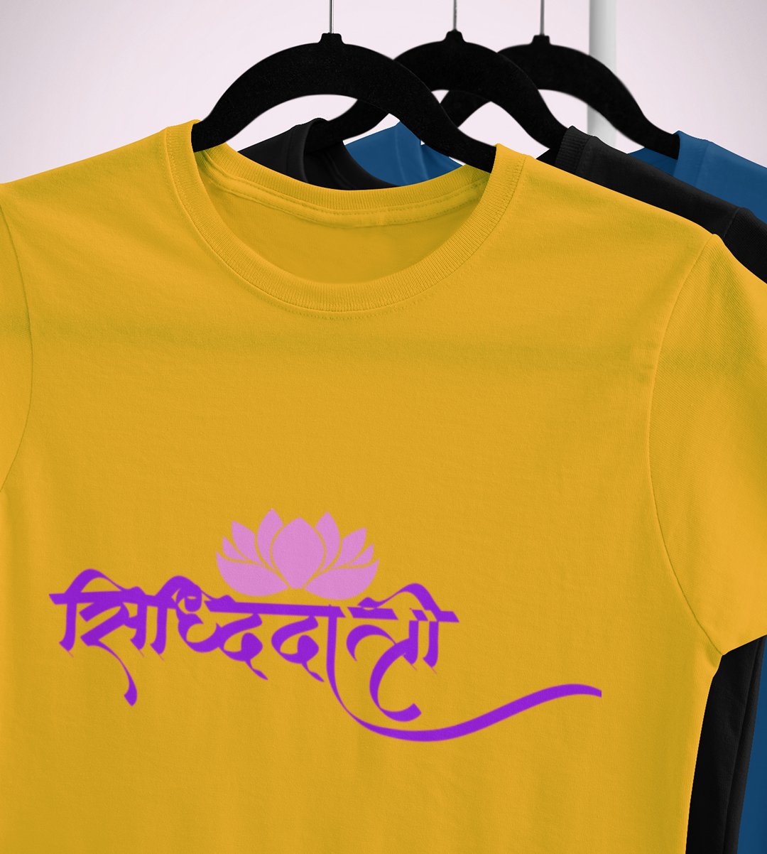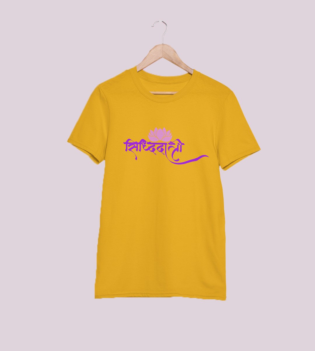 Shiddhidhatri printed unisex adults round neck cotton half-sleeve yellow tshirt specially for Navratri festival/ Durga puja