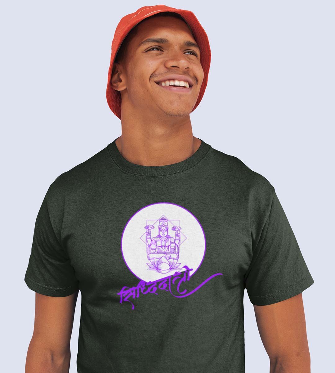Shiddhidhatri text printed unisex adults round neck cotton half-sleeve green tshirt specially for Navratri festival/ Durga puja