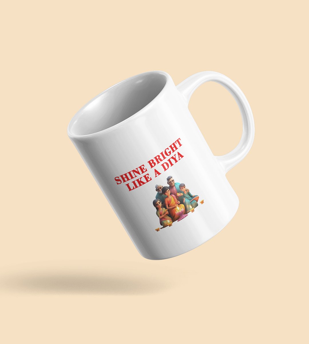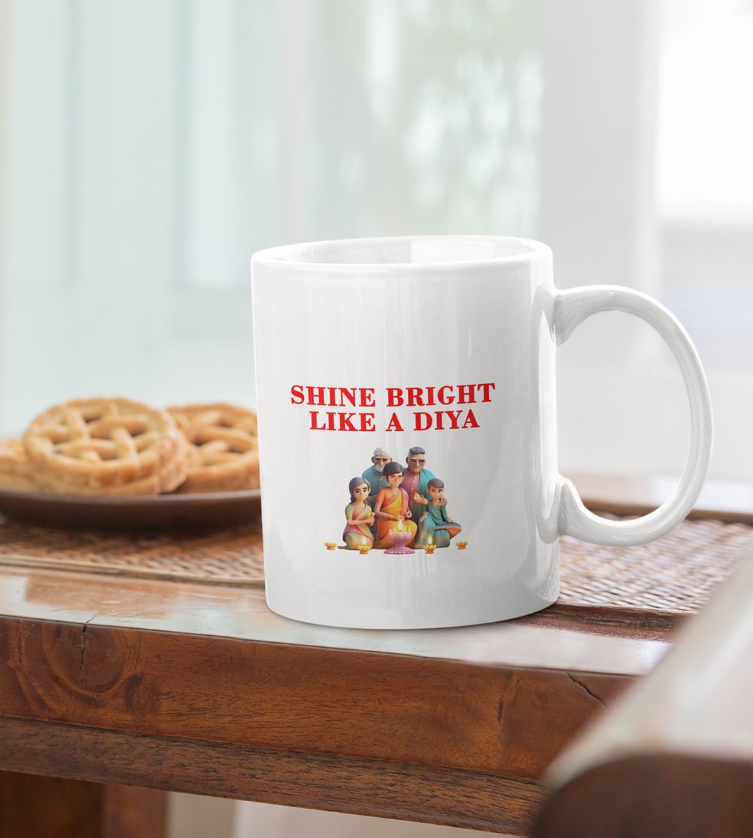 Embrace the luminous spirit of Diwali with our "Shine Bright Like A Diya" Coffee Mug. The heartwarming design captures the essence of family celebrating the festival, radiating the warmth and togetherness that defines Diwali. Sip your coffee and bask in the glow of Diwali with this heartwarming mug.