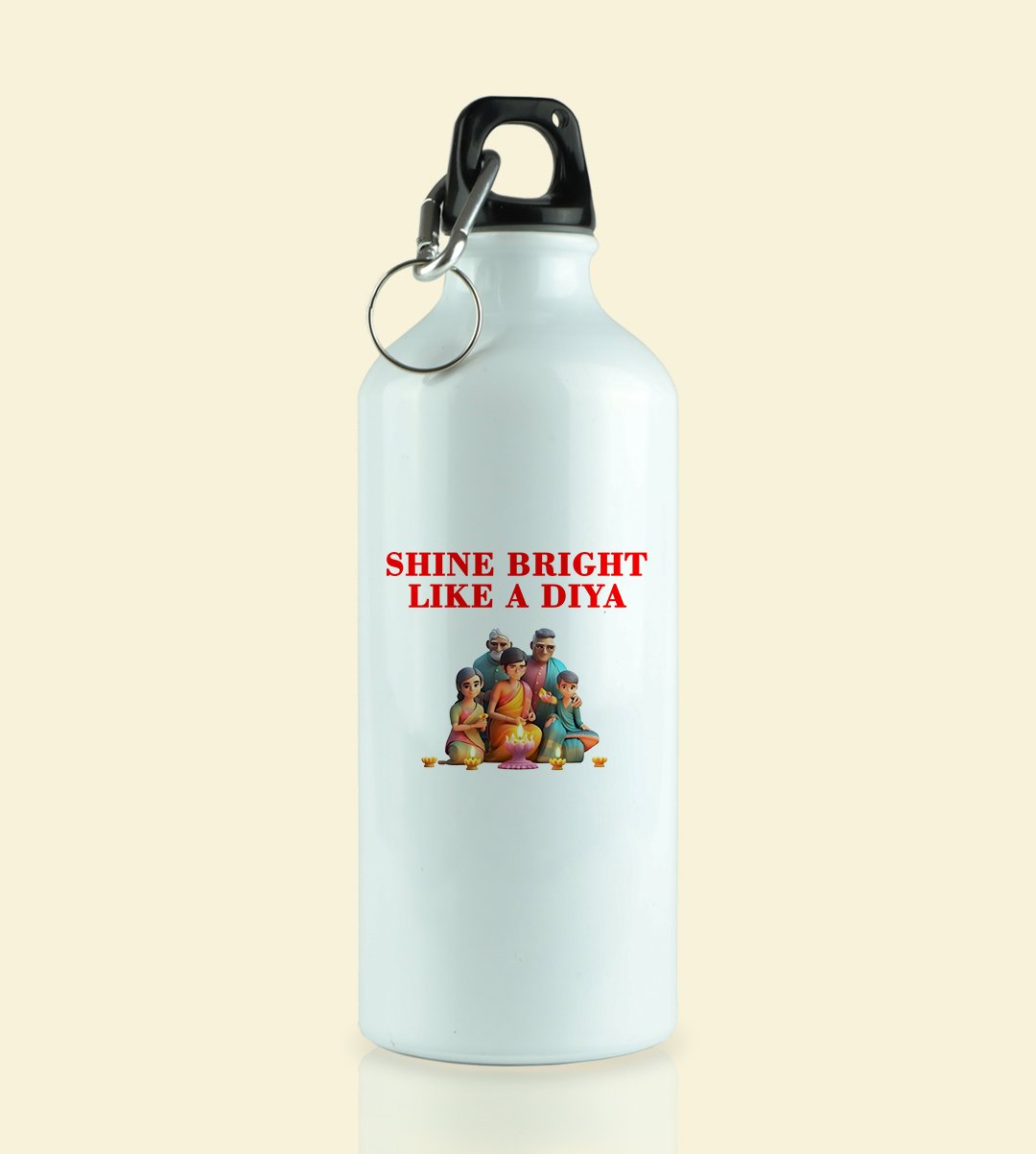 Embrace the luminous spirit of Diwali with our "Shine Bright Like A Diya" sipper bottle. The heartwarming design captures the essence of family celebrating the festival, radiating the warmth and togetherness that defines Diwali. Sip your coffee and bask in the glow of Diwali with this heartwarming sipper bottle.