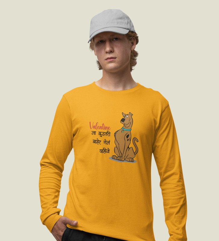 Should Go Out Somewhere: Printed (yellow) Full Sleeve T-Shirt For Singles