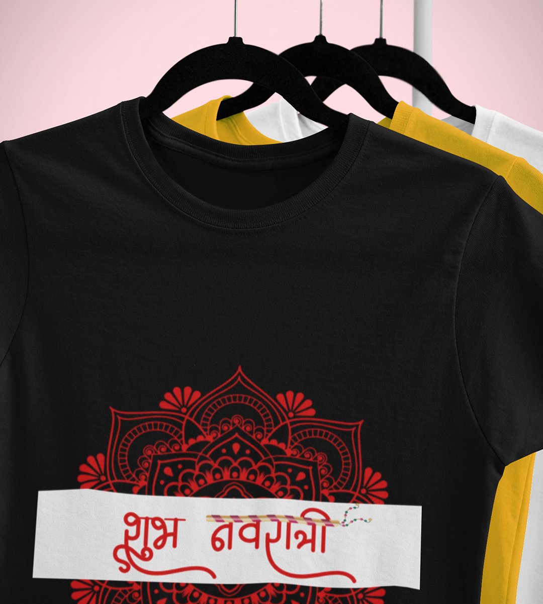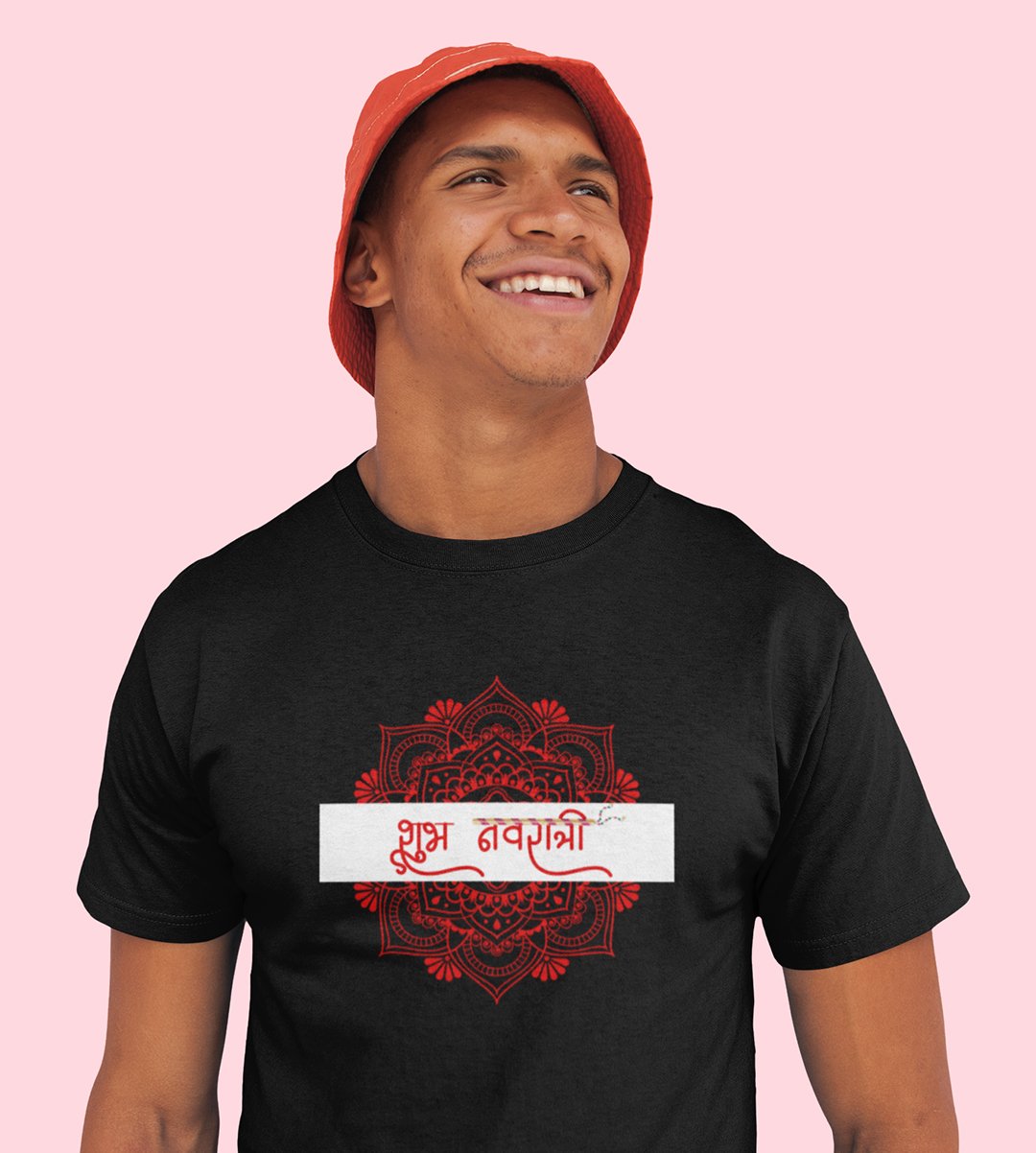 Shub Navratri (Mandala art) printed unisex adults round neck cotton half-sleeve black tshirt specially for Navratri festival/ Durga puja