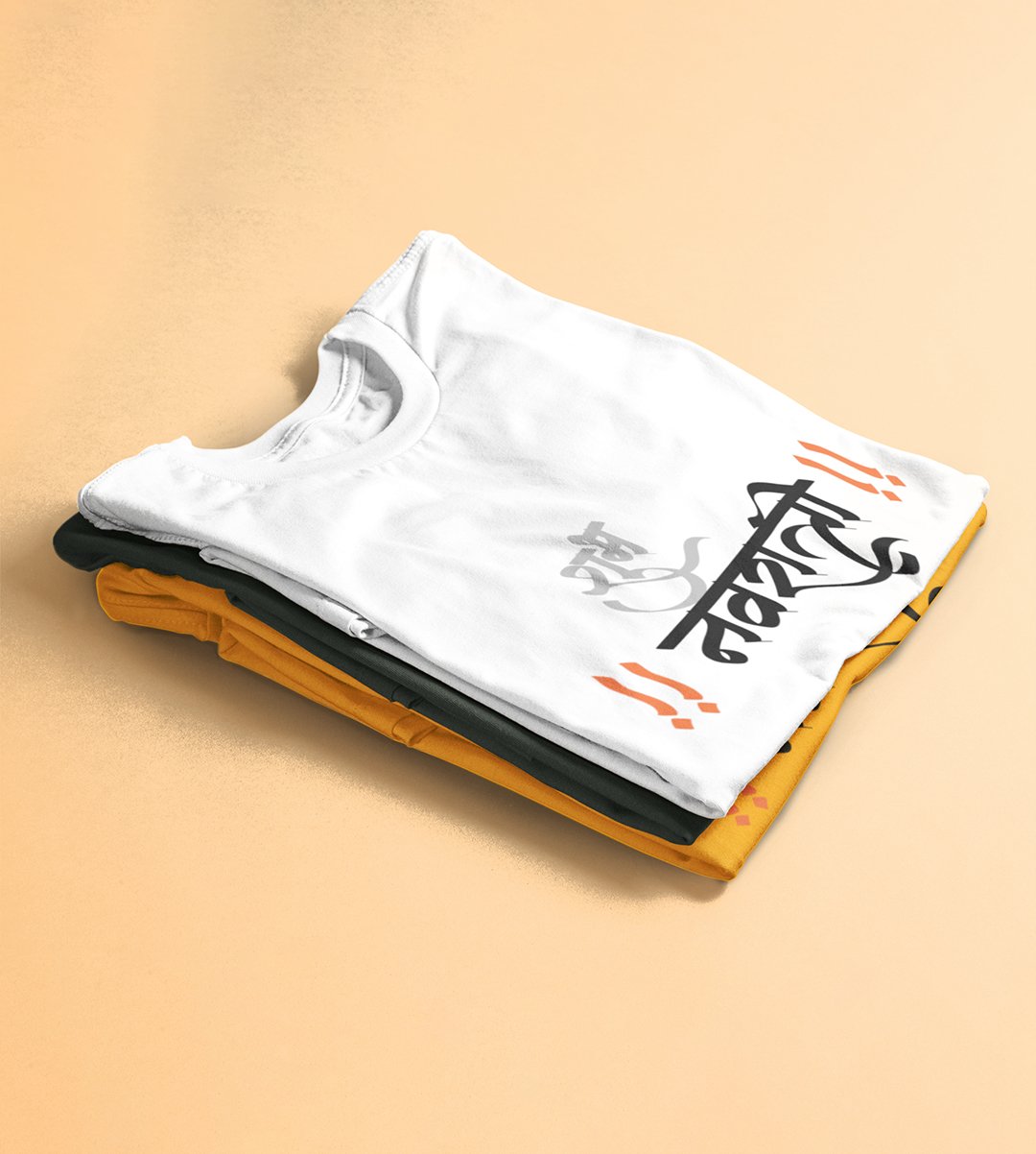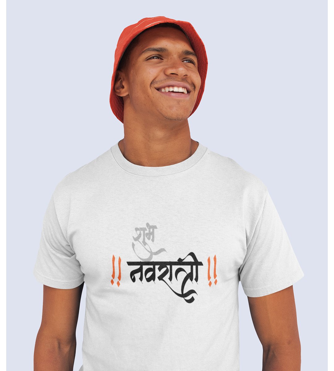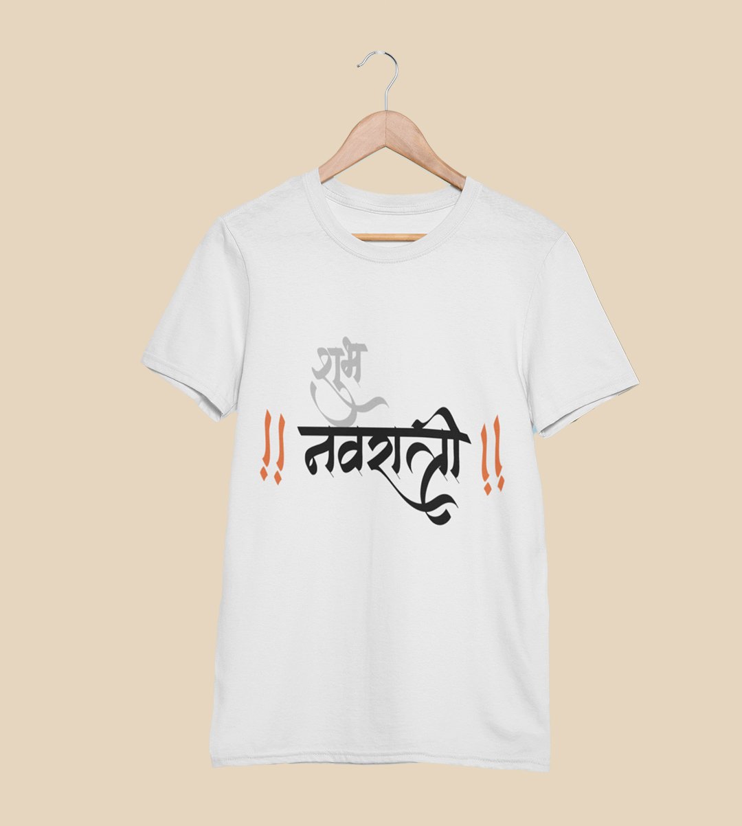 Navratri is a very auspicious festival for hindus. It takes place at the beginning of October and sometimes September. Enjoy the 9 days of festivities with full zeal and make yourself submerged in the love of Maa Durga. Navratri is also known as Durga Puja. And with this Tees, you can shine like a star during this festive season with our navratri themed cotton half sleeved Tshirts. You can pair our t-shirts with trousers and denim of your choice and make it a weekday smart casual or weekend wear. This is durable. This tshirt is smooth and soft which makes you comfortable to wear during all seasons. The printing in it is durable and odourless. It has five sizes, S,M,L,XL,XXL. The Tshirt colour is intact even after repeated washes. It can be kept in your wardrobe and hangers. Please avoid washing mashine to clean this Tee, it may affect the print. Hand wash only. We have brought you many navratri related designs printed on our different colour Tshirts to choose from. Grab it now.