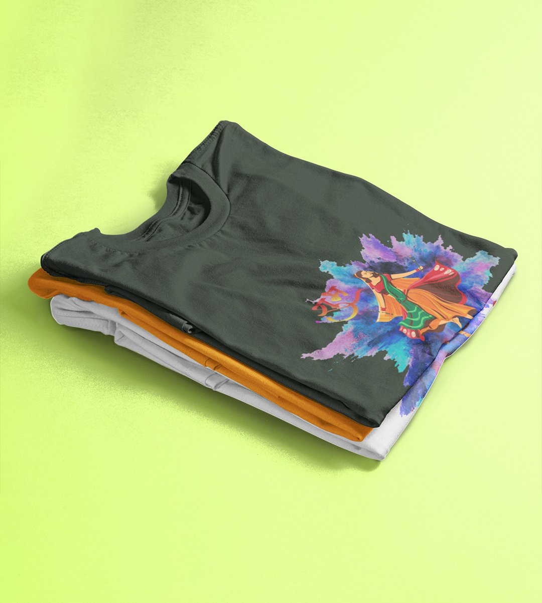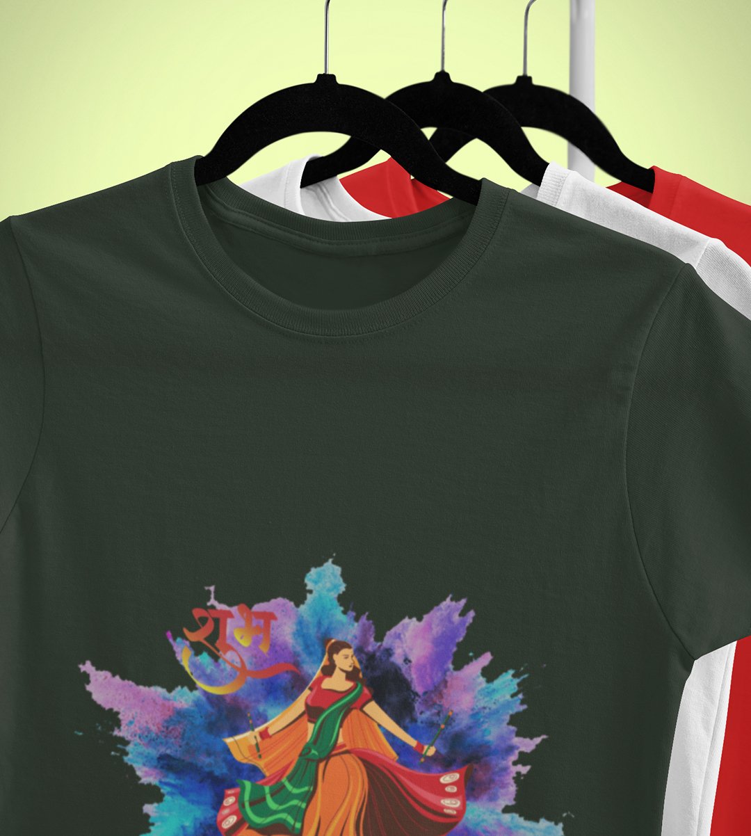 Navratri is a very auspicious festival for hindus. It takes place at the beginning of October and sometimes September. Enjoy the 9 days of festivities with full zeal and make yourself submerged in the love of Maa Durga. Navratri is also known as Durga Puja. And with this Tees, you can shine like a star during this festive season with our navratri themed cotton half sleeved Tshirts. You can pair our t-shirts with trousers and denim of your choice and make it a weekday smart casual or weekend wear. This is durable. This tshirt is smooth and soft which makes you comfortable to wear during all seasons. The printing in it is durable and odourless. It has five sizes, S,M,L,XL,XXL. The Tshirt colour is intact even after repeated washes. It can be kept in your wardrobe and hangers. Please avoid washing mashine to clean this Tee, it may affect the print. Hand wash only. We have brought you many navratri related designs printed on our different colour Tshirts to choose from. Grab it now.