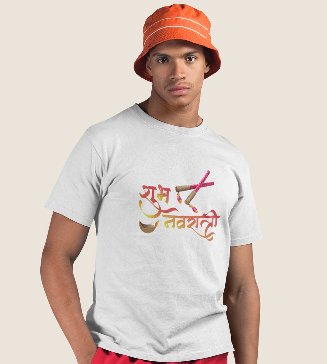 Navratri is a very auspicious festival for hindus. It takes place at the beginning of October and sometimes September. Enjoy the 9 days of festivities with full zeal and make yourself submerged in the love of Maa Durga. Navratri is also known as Durga Puja. And with this Tees, you can shine like a star during this festive season with our navratri themed cotton half sleeved Tshirts. You can pair our t-shirts with trousers and denim of your choice and make it a weekday smart casual or weekend wear. This is durable. This tshirt is smooth and soft which makes you comfortable to wear during all seasons. The printing in it is durable and odourless. It has five sizes, S,M,L,XL,XXL. The Tshirt colour is intact even after repeated washes. It can be kept in your wardrobe and hangers. Please avoid washing mashine to clean this Tee, it may affect the print. Hand wash only. We have brought you many navratri related designs printed on our different colour Tshirts to choose from. Grab it now.