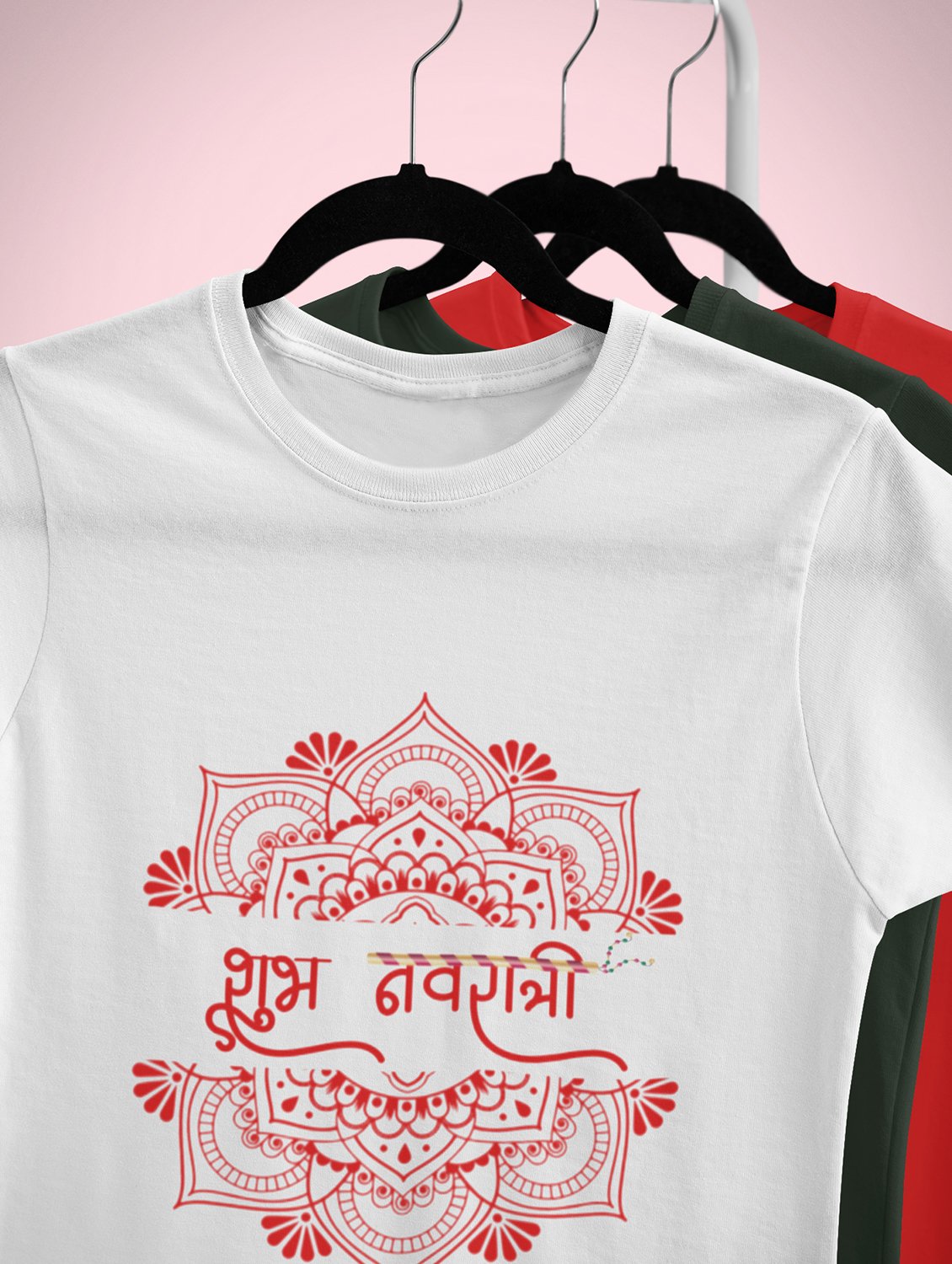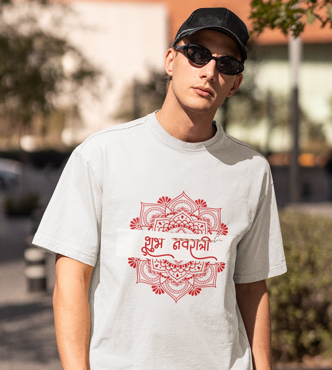 Navratri is a very auspicious festival for hindus. It takes place at the beginning of October and sometimes September. Enjoy the 9 days of festivities with full zeal and make yourself submerged in the love of Maa Durga. Navratri is also known as Durga Puja. And with this Tees, you can shine like a star during this festive season with our navratri themed cotton half sleeved Tshirts. You can pair our t-shirts with trousers and denim of your choice and make it a weekday smart casual or weekend wear. This is durable. This tshirt is smooth and soft which makes you comfortable to wear during all seasons. The printing in it is durable and odourless. It has five sizes, S,M,L,XL,XXL. The Tshirt colour is intact even after repeated washes. It can be kept in your wardrobe and hangers. Please avoid washing mashine to clean this Tee, it may affect the print. Hand wash only. We have brought you many navratri related designs printed on our different colour Tshirts to choose from. Grab it now.