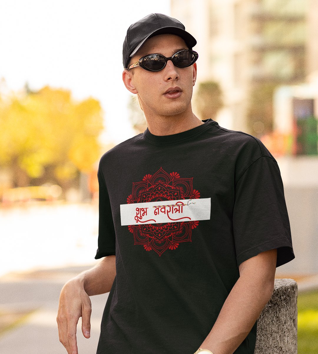 Navratri is a very auspicious festival for hindus. It takes place at the beginning of October and sometimes September. Enjoy the 9 days of festivities with full zeal and make yourself submerged in the love of Maa Durga. Navratri is also known as Durga Puja. And with this Tees, you can shine like a star during this festive season with our navratri themed cotton half sleeved Tshirts. You can pair our t-shirts with trousers and denim of your choice and make it a weekday smart casual or weekend wear. This is durable. This tshirt is smooth and soft which makes you comfortable to wear during all seasons. The printing in it is durable and odourless. It has five sizes, S,M,L,XL,XXL. The Tshirt colour is intact even after repeated washes. It can be kept in your wardrobe and hangers. Please avoid washing mashine to clean this Tee, it may affect the print. Hand wash only. We have brought you many navratri related designs printed on our different colour Tshirts to choose from. Grab it now.