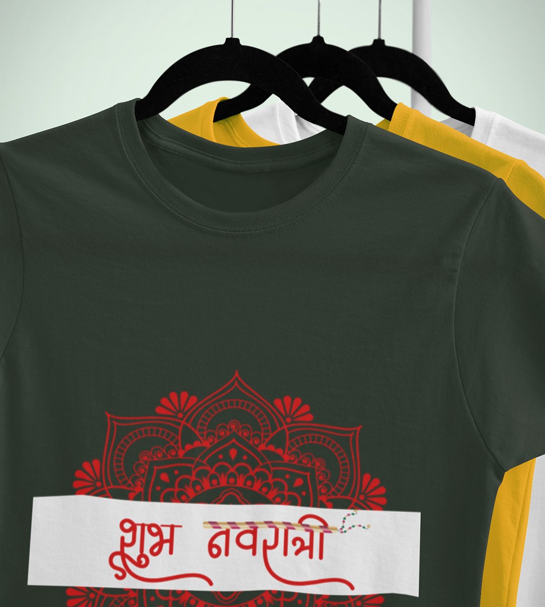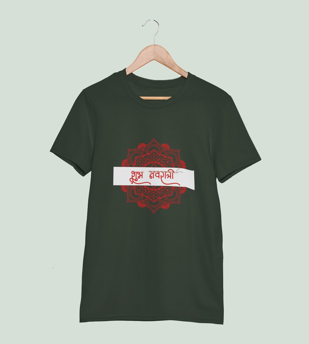 Shubh Navratri (mandala) printed unisex adults round neck cotton half-sleeve green tshirt specially for Navratri festival/ Durga puja