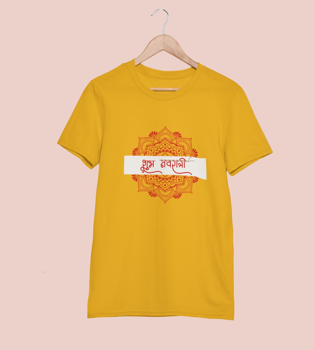 Shubh Navratri (Mandala) printed unisex adults round neck cotton half-sleeve yellow tshirt specially for Navratri festival/ Durga puja