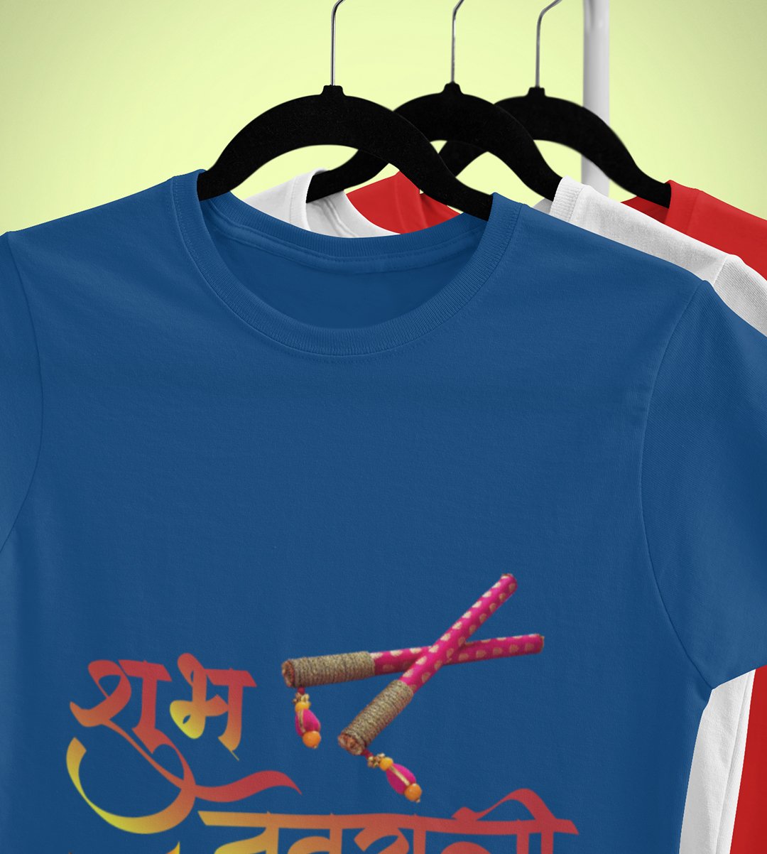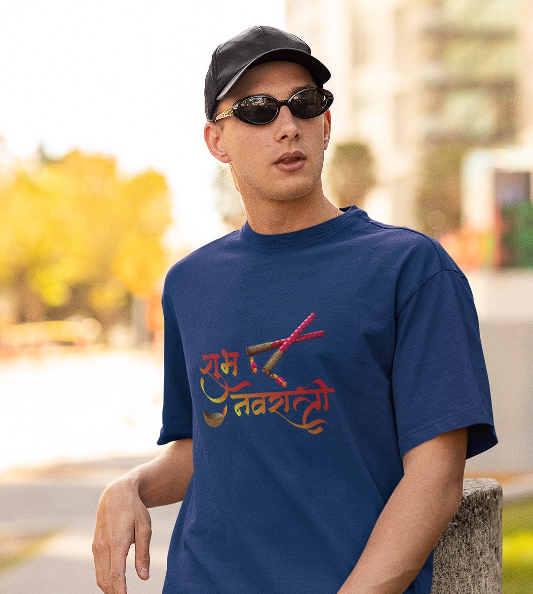 Shubh Navratri printed unisex adults round neck cotton half-sleeve blue tshirt specially for Navratri festival/ Durga puja
