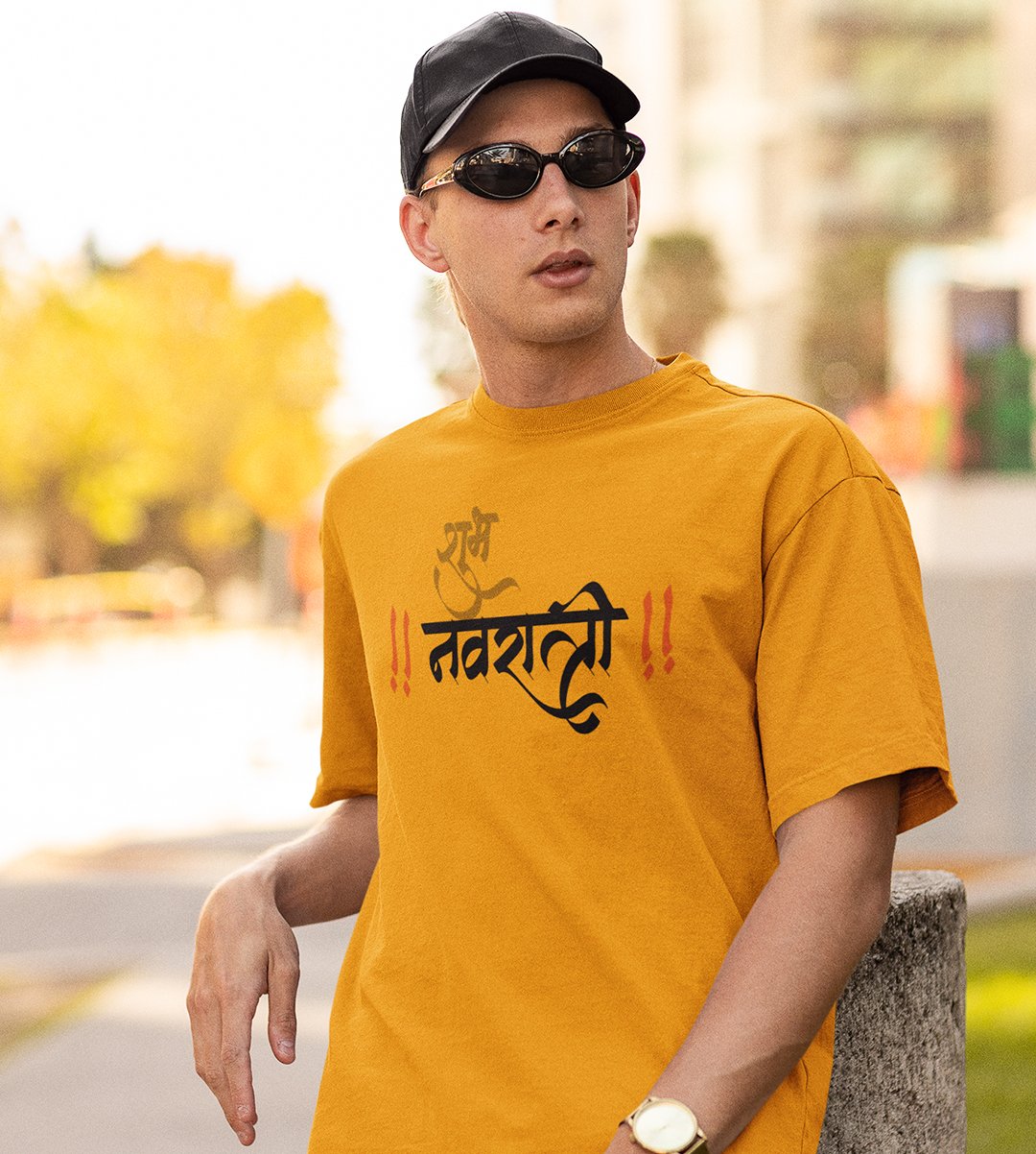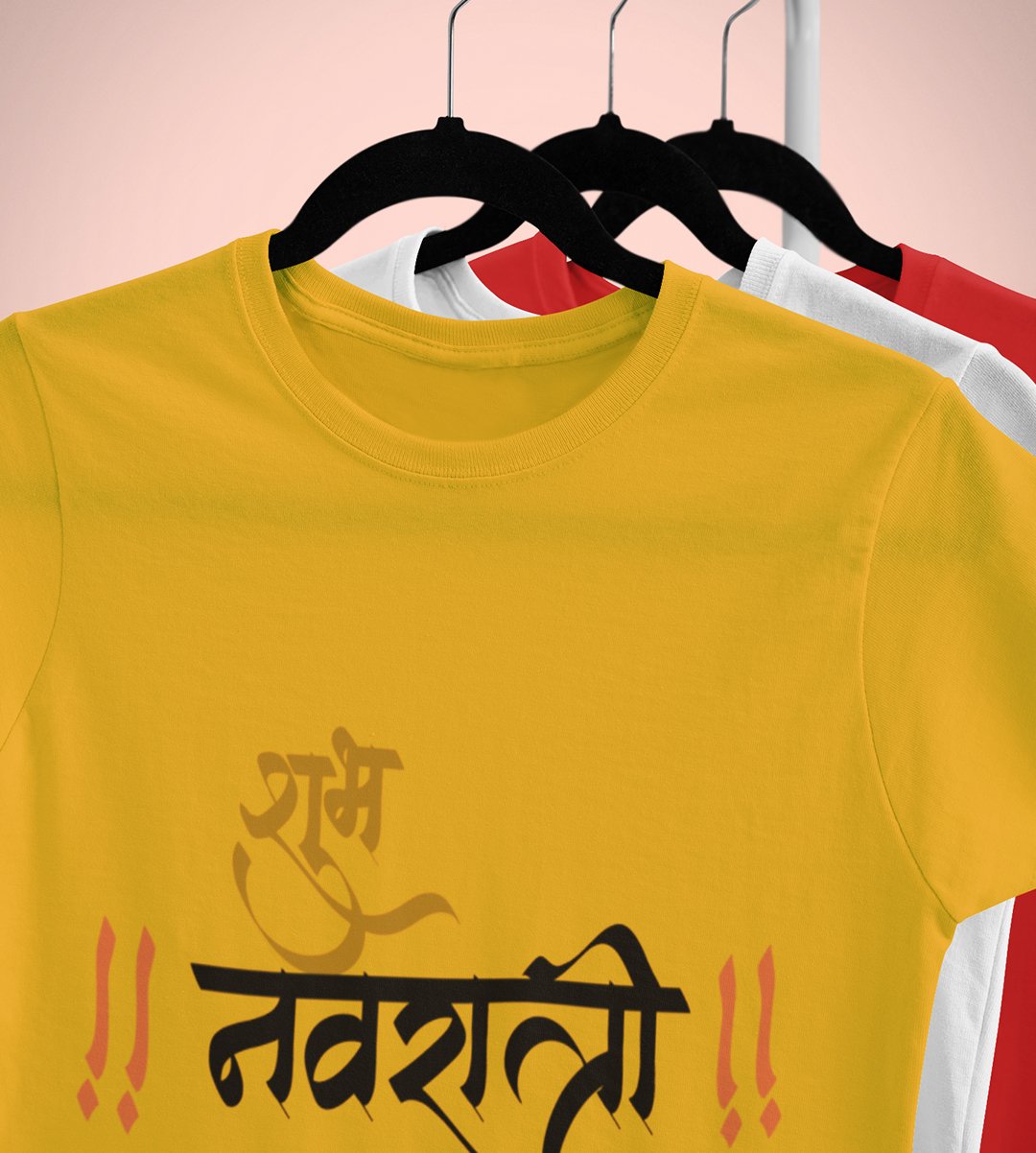 Navratri is a very auspicious festival for hindus. It takes place at the beginning of October and sometimes September. Enjoy the 9 days of festivities with full zeal and make yourself submerged in the love of Maa Durga. Navratri is also known as Durga Puja. And with this Tees, you can shine like a star during this festive season with our navratri themed cotton half sleeved Tshirts. You can pair our t-shirts with trousers and denim of your choice and make it a weekday smart casual or weekend wear. This is durable. This tshirt is smooth and soft which makes you comfortable to wear during all seasons. The printing in it is durable and odourless. It has five sizes, S,M,L,XL,XXL. The Tshirt colour is intact even after repeated washes. It can be kept in your wardrobe and hangers. Please avoid washing mashine to clean this Tee, it may affect the print. Hand wash only. We have brought you many navratri related designs printed on our different colour Tshirts to choose from. Grab it now.