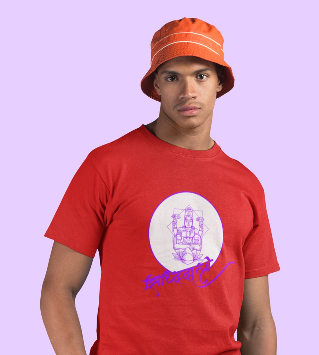 Siddhidhatri text printed unisex adults round neck cotton half-sleeve red tshirt specially for Navratri festival/ Durga puja