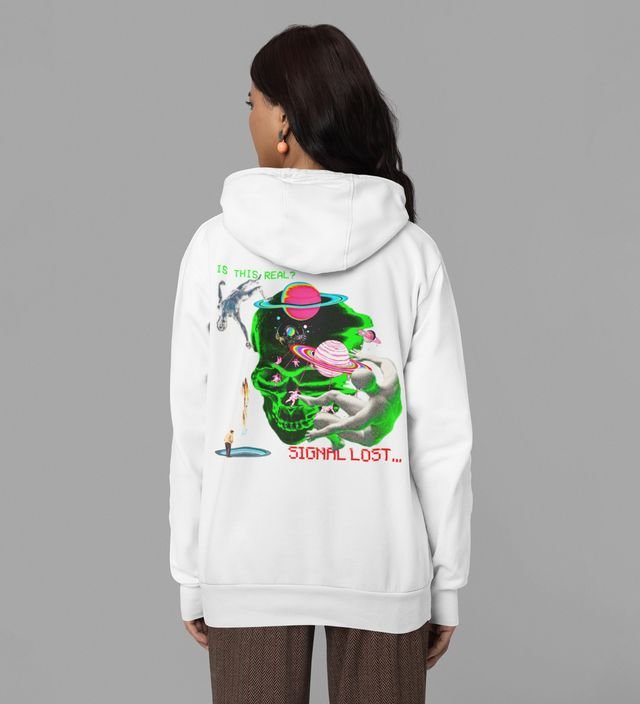 Signal Lost Disconnect and Relax White Cotton Printed Hoodies For Women