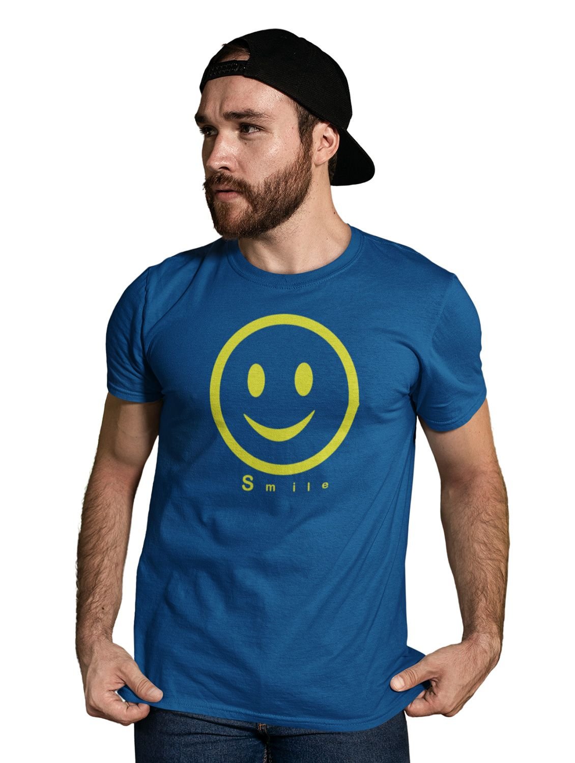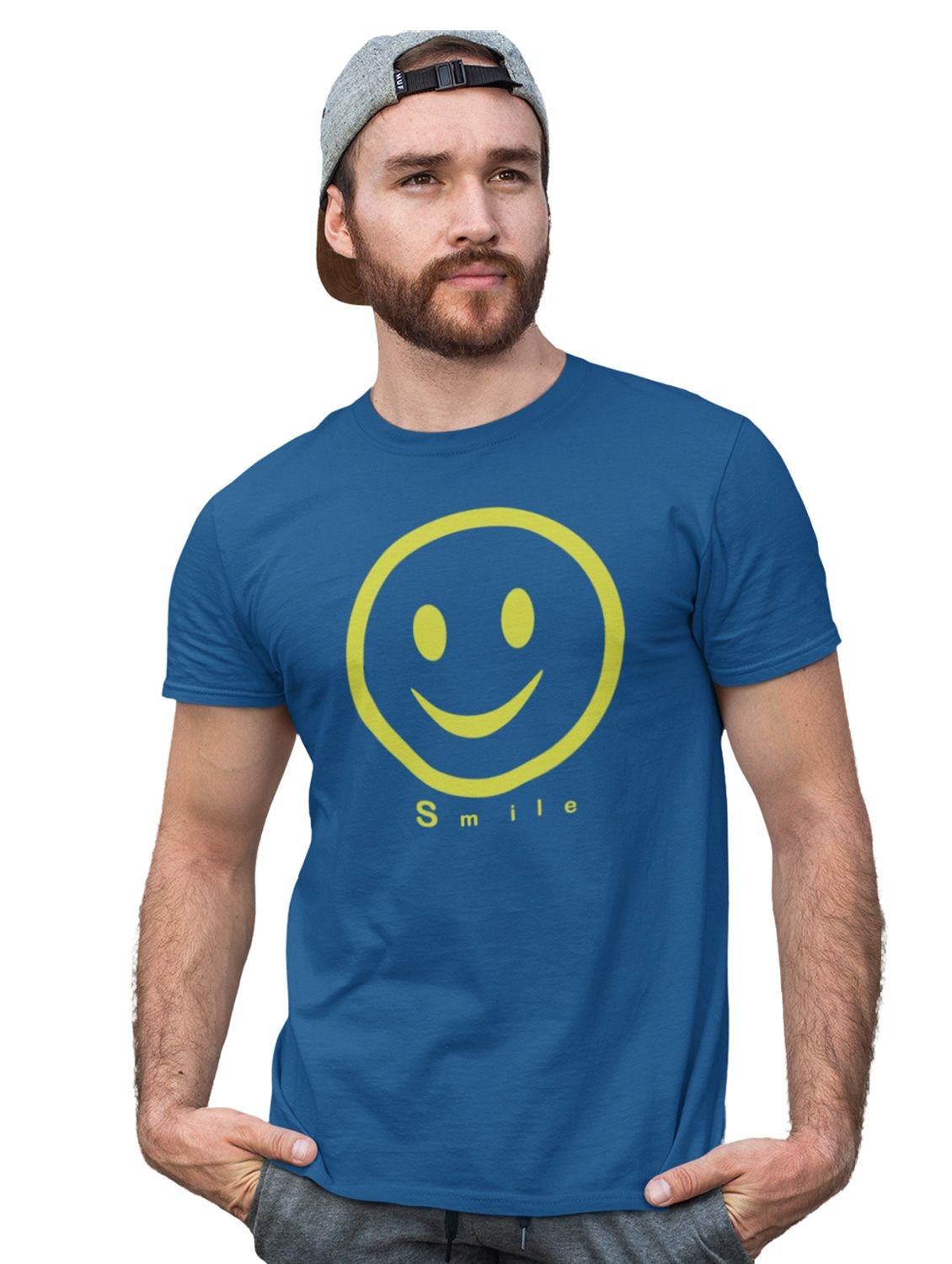 Simple Smile -Yellowish Outline Printed T-shirt (Blue) - Clothes for Emoji Lovers - Suitable for Fun Events - Foremost Gifting Material for Your Friends and Close Ones
