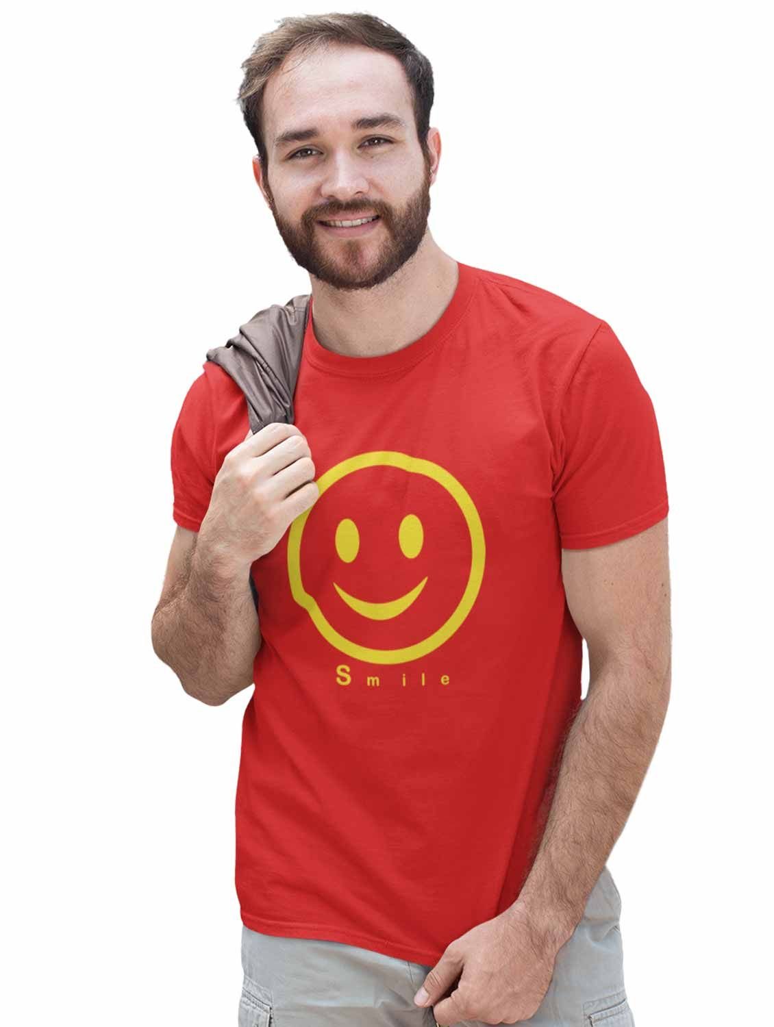 Simple Smile -Yellowish Outline Printed T-shirt (Red) - Clothes for Emoji Lovers - Foremost Gifting Material for Your Friends and Close Ones