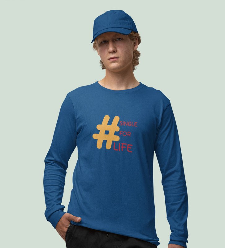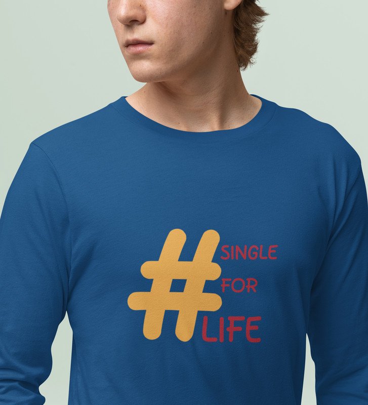 Single For Life : Sublimation Printed (blue) Full Sleeve T-Shirt For Singles