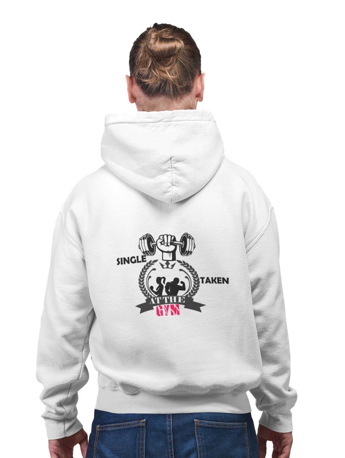 Single, Taken At The Gym printed artswear white hoodies for winter casual wear specially for Men