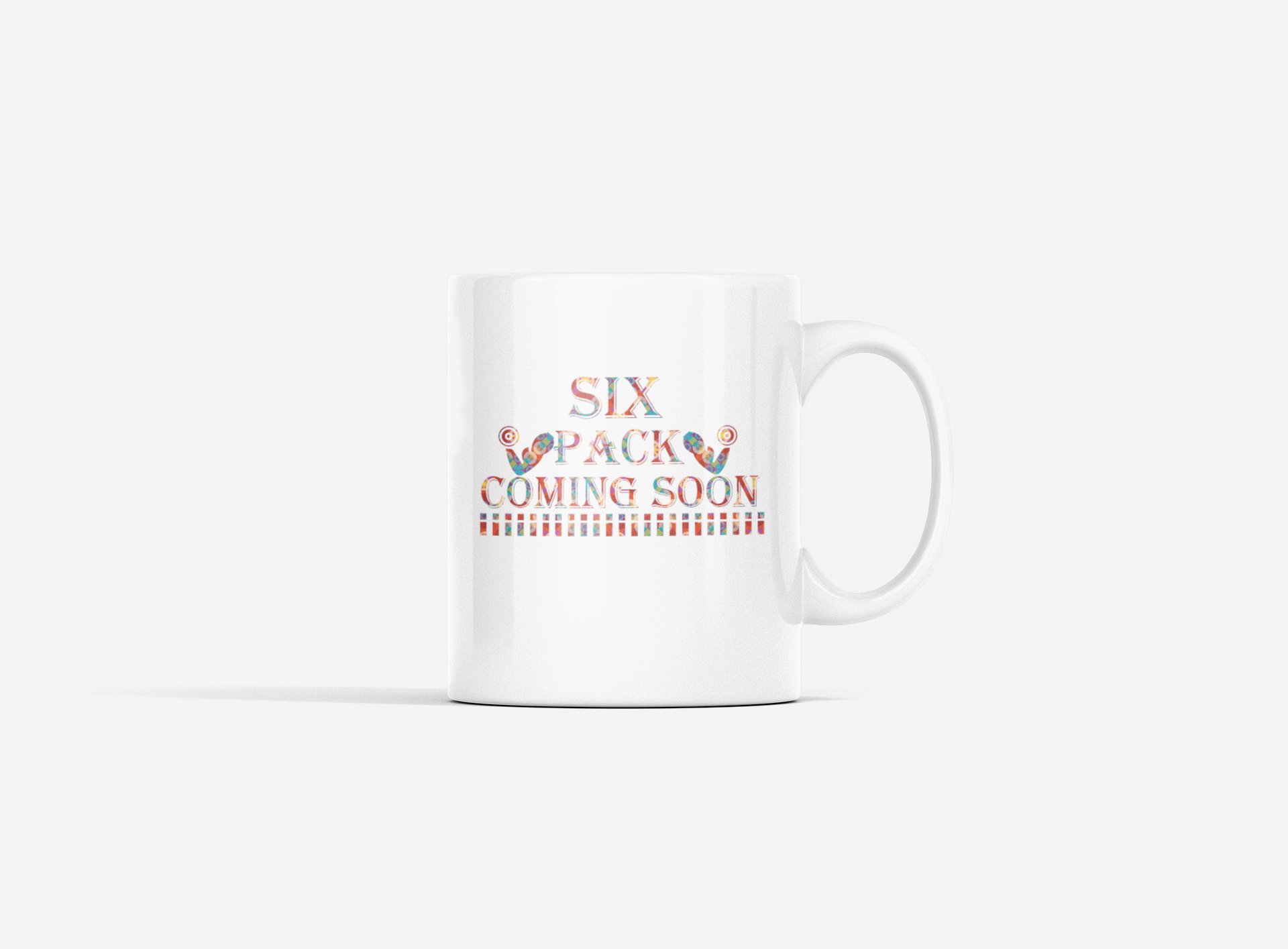 Six Pack Coming Soon - gym themed printed ceramic white coffee and tea mugs/ cups for gym lovers