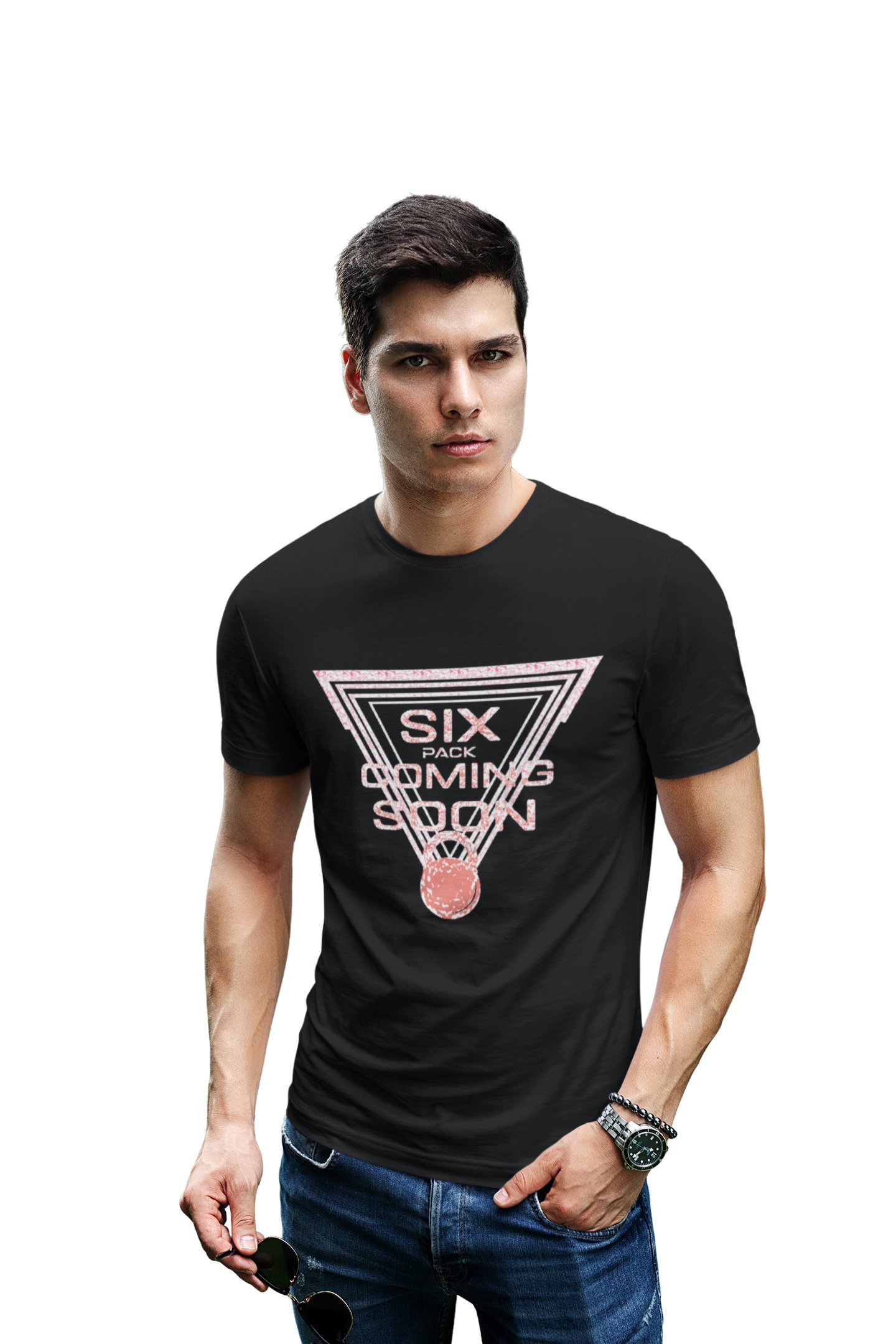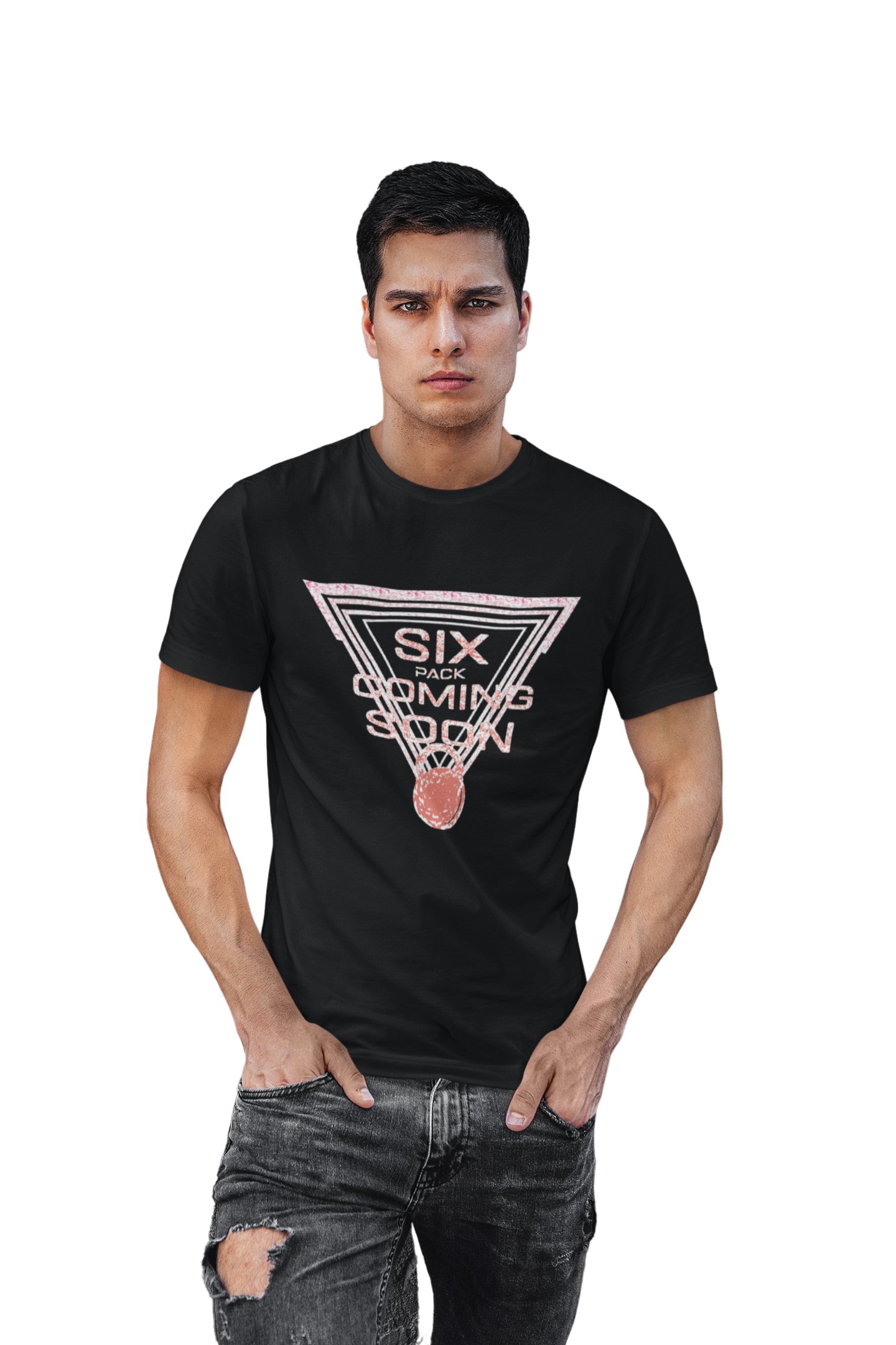 Six Pack Coming Soon, Scribbled letters, Round Neck Gym Tshirt (Black Tshirt) - Clothes for Gym Lovers - Suitable for Gym Going Person - Foremost Gifting Material for Your Friends and Close Ones