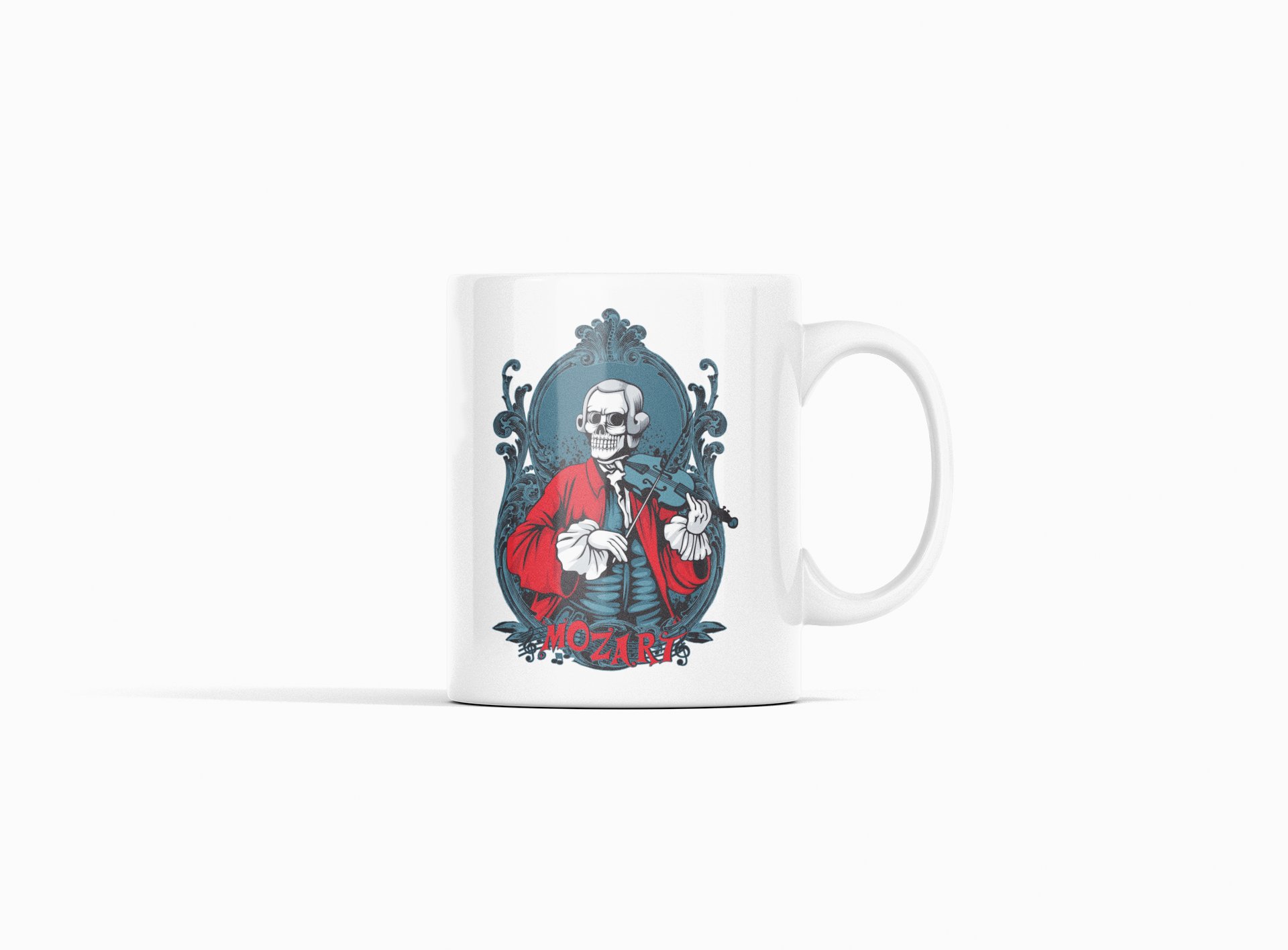 Skeleton with violin - animation themed printed ceramic white coffee and tea mugs/ cups for animation lovers