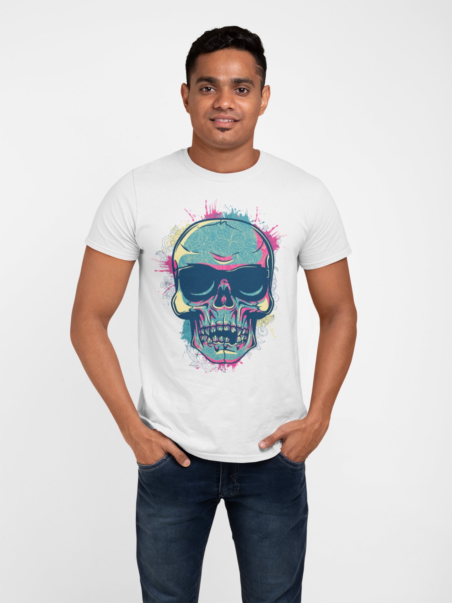 Skull - colourfull - White - printed T-shirts - Men's stylish clothing - Cool tees for boys