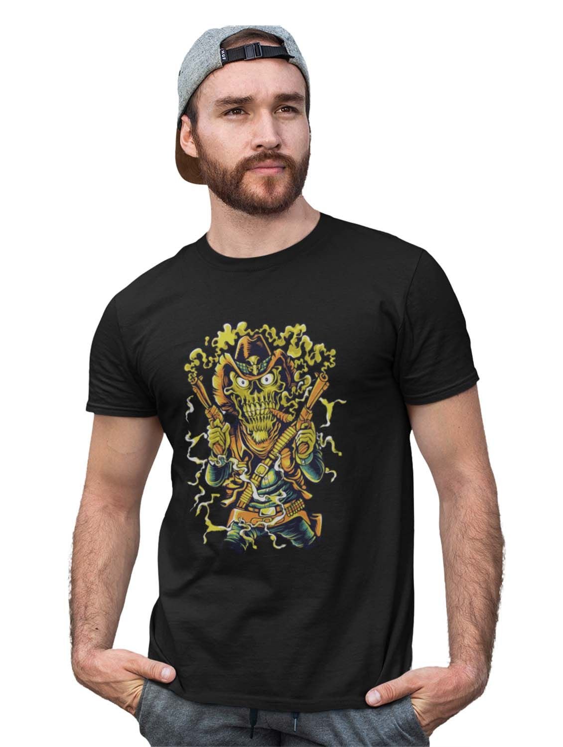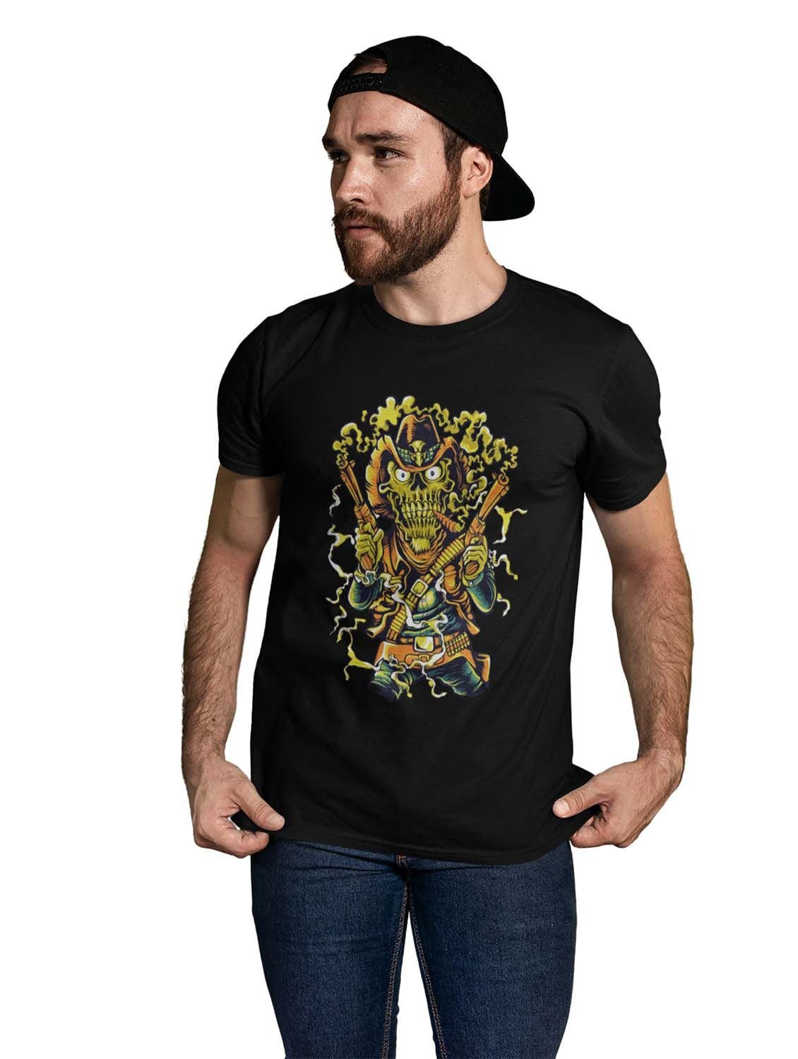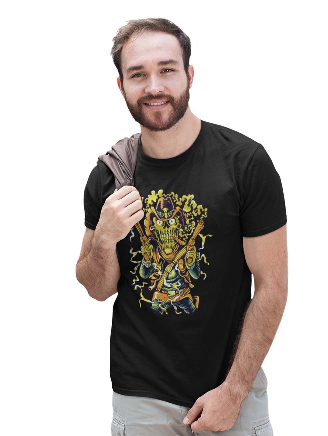 The Cowboy Black Round Neck Cotton Half Sleeved T-Shirt with Printed Graphics