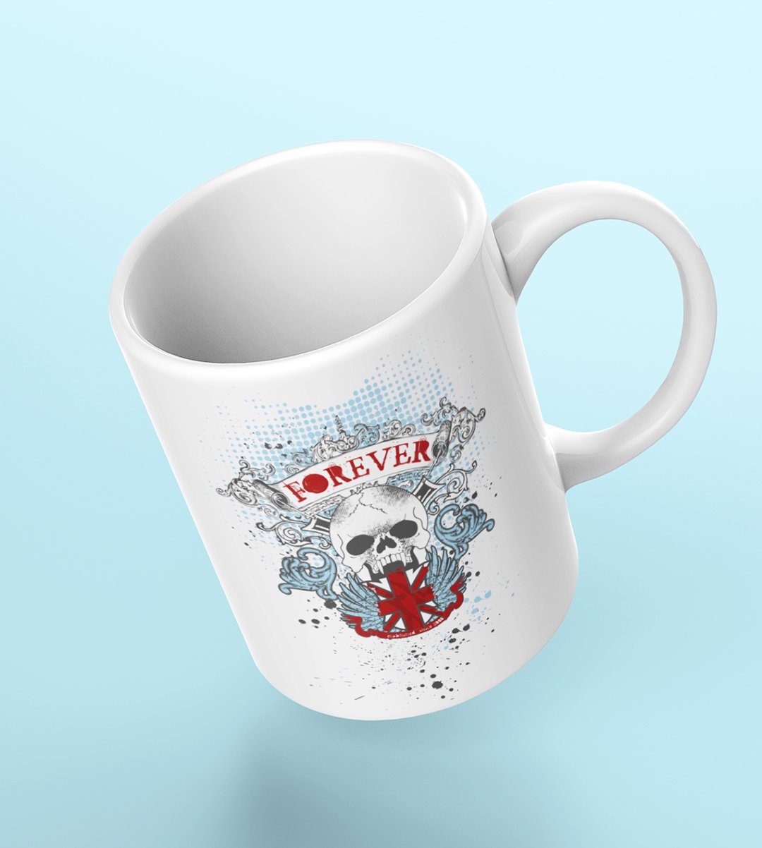 Skull Forever- animation themed printed ceramic white coffee and tea mugs/ cups for animation lovers