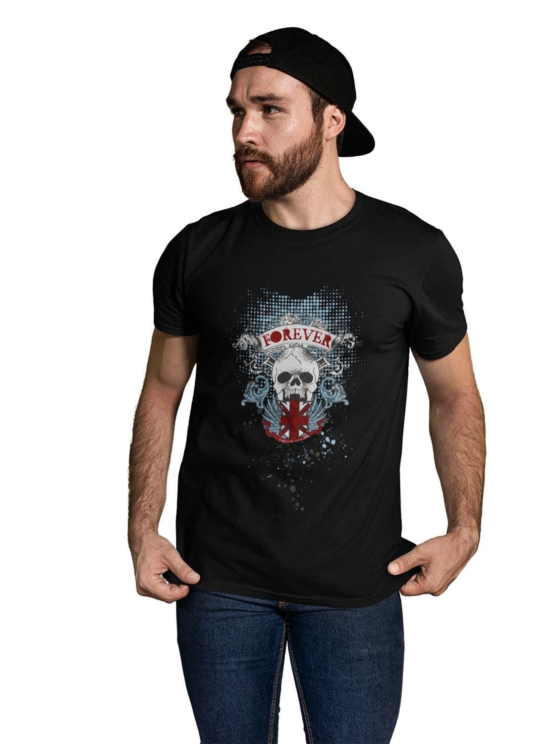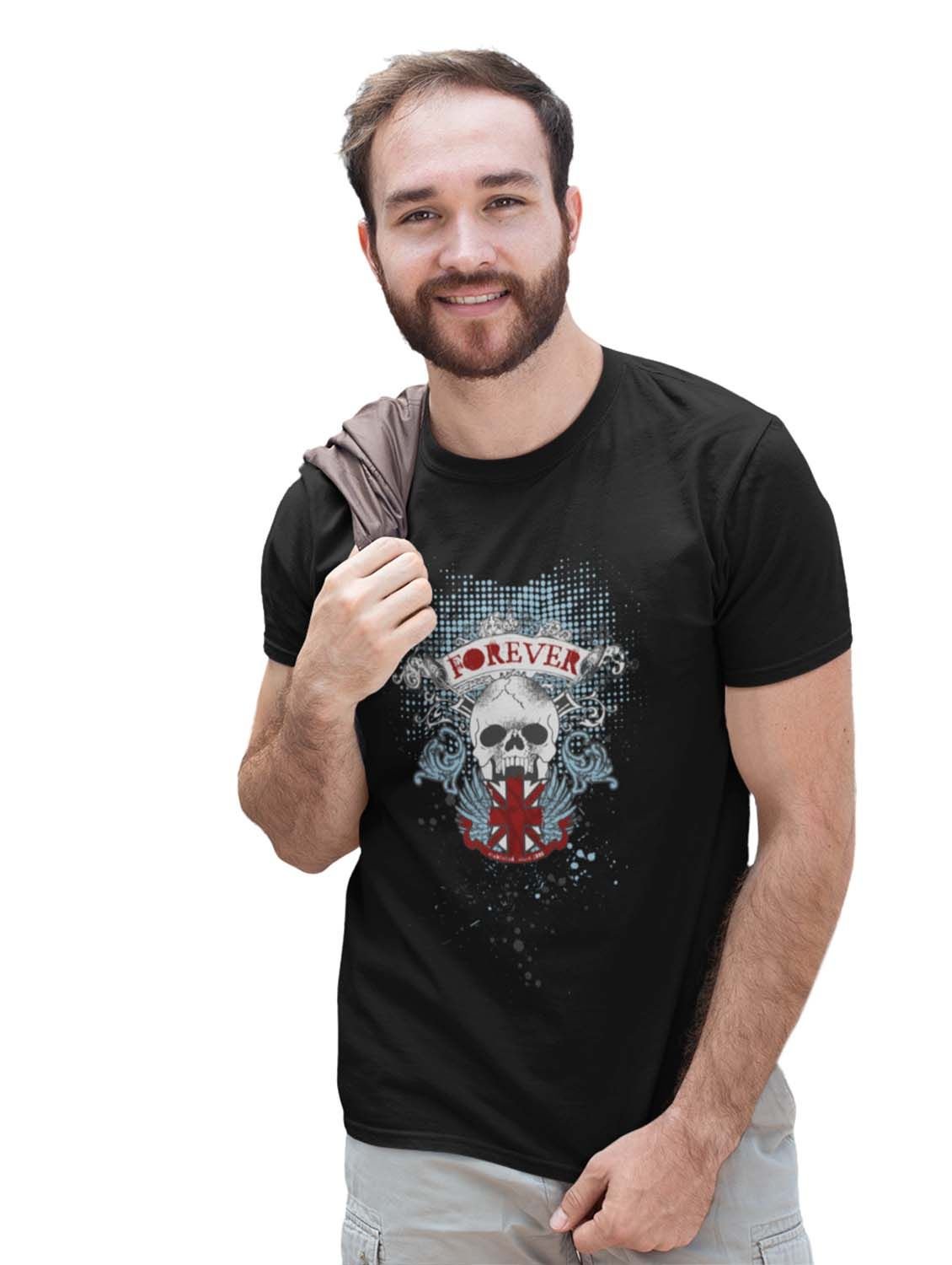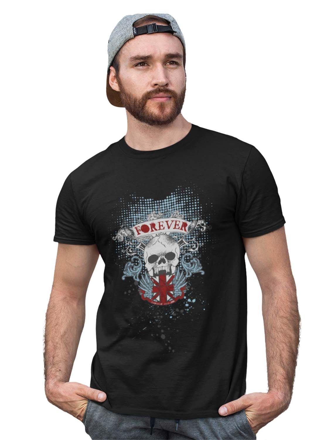 Forever Black Round Neck Cotton Half Sleeved T-Shirt with Printed Graphics