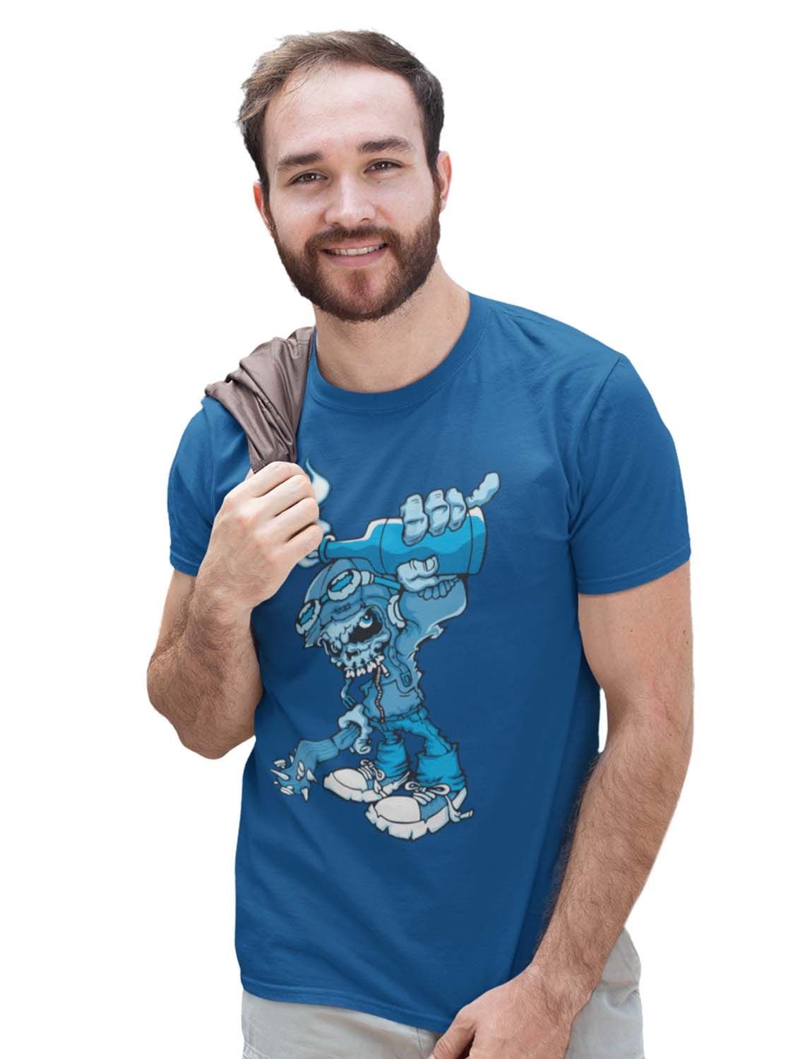 Demon- The Gamer Blue Round Neck Cotton Half Sleeved T-Shirt with Printed Graphics