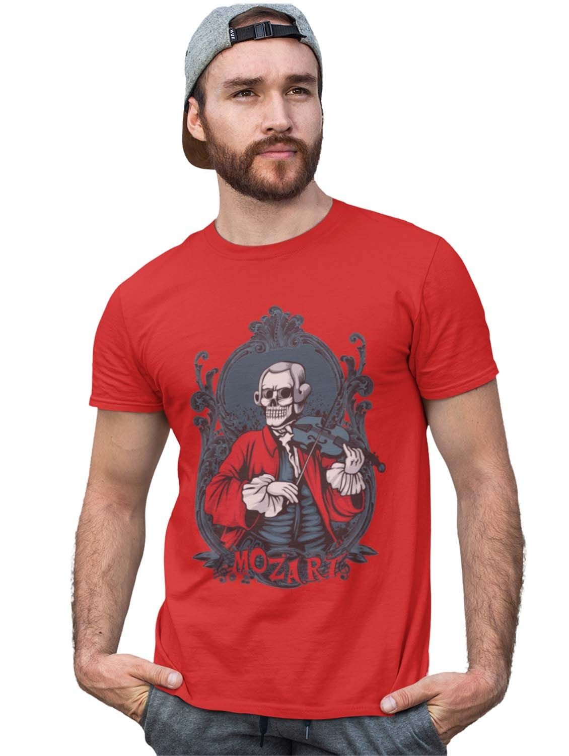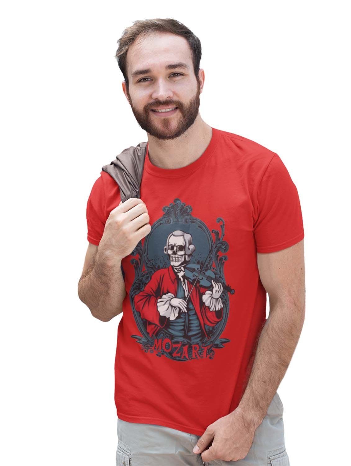 Mozart 35 Red Round Neck Cotton Half Sleeved T-Shirt with Printed Graphics
