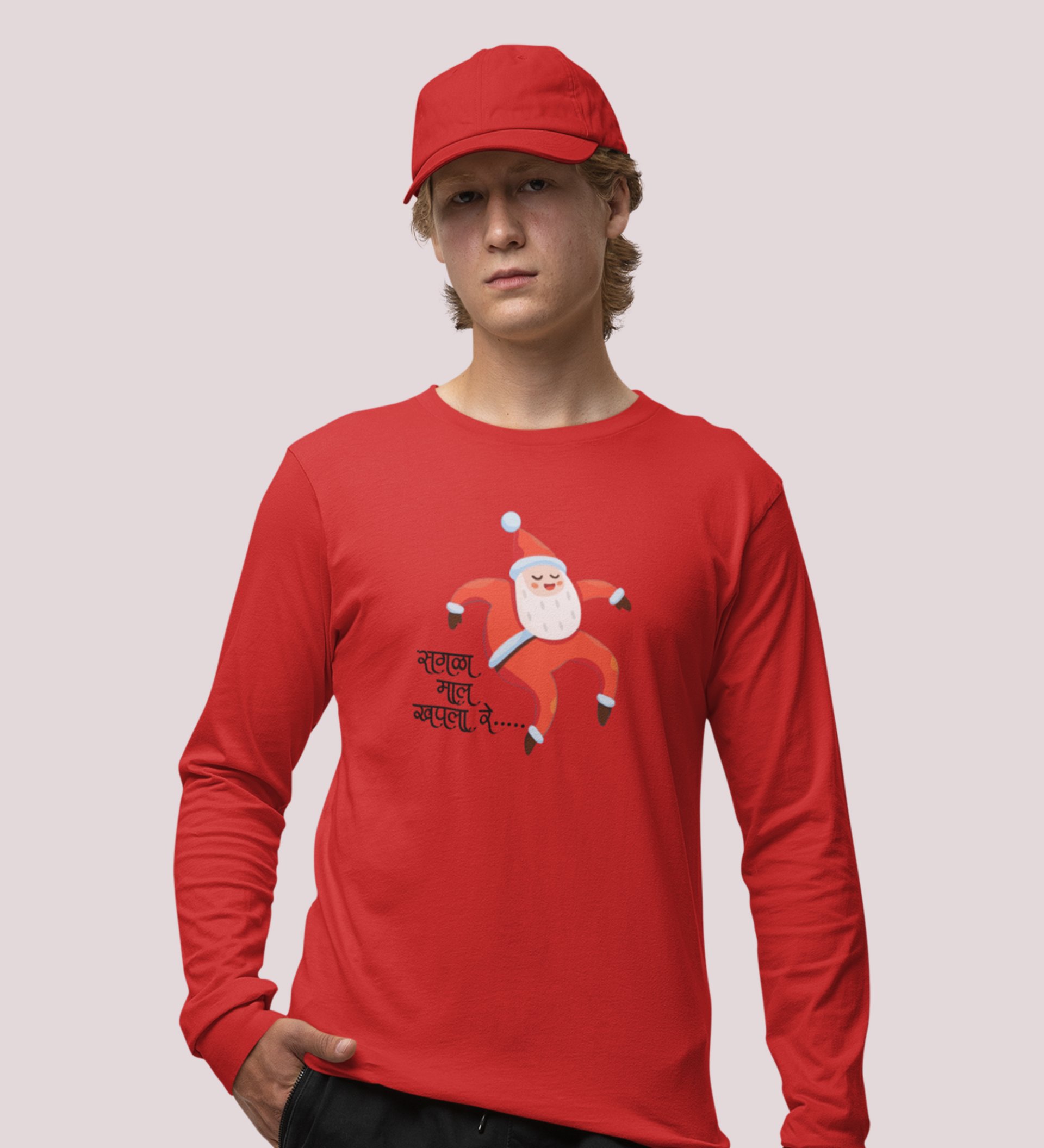 Sleepy Santa: Cute DesignerFull Sleeve T-shirt Red Unique Gift For Kids Boys Girls
