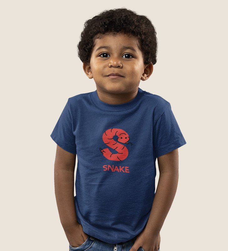 Slippery Snake, Boys Printed Crew Neck Tshirt (Navy blue)
