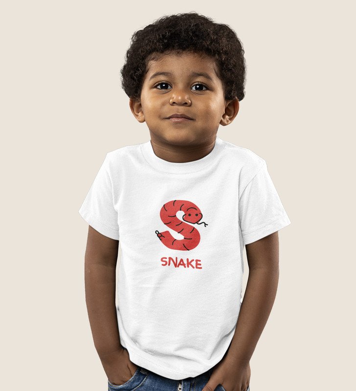 Slippery Snake, Boys Printed Crew Neck Tshirt (White)