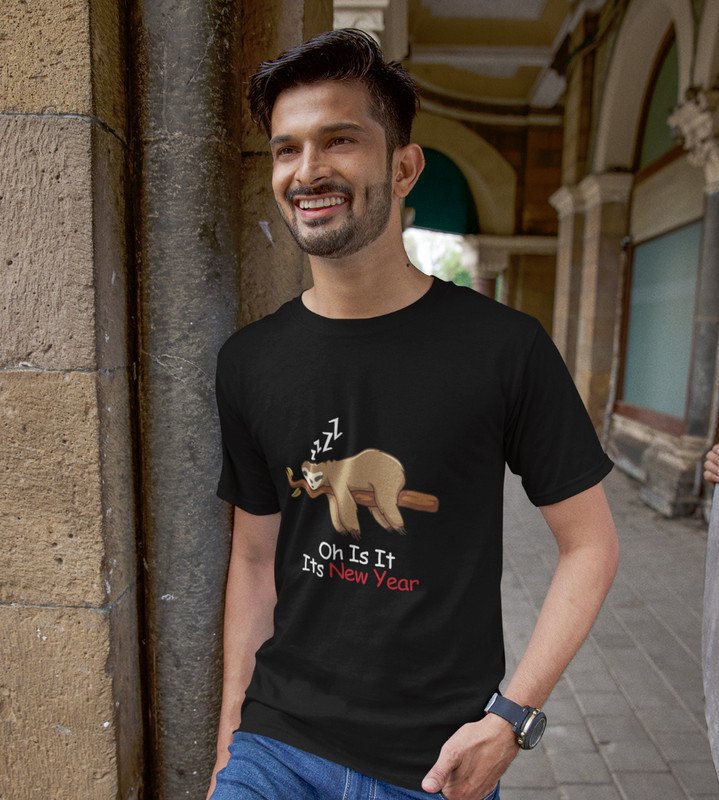 5. Sloth's New Year Black Graphic Printed T-shirt For Mens Boys