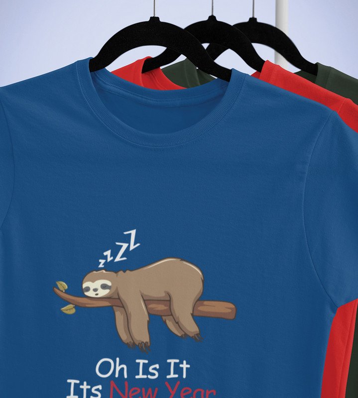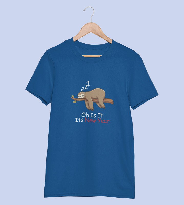Sloth's New Year Blue Graphic Printed T-shirt For Mens Boys