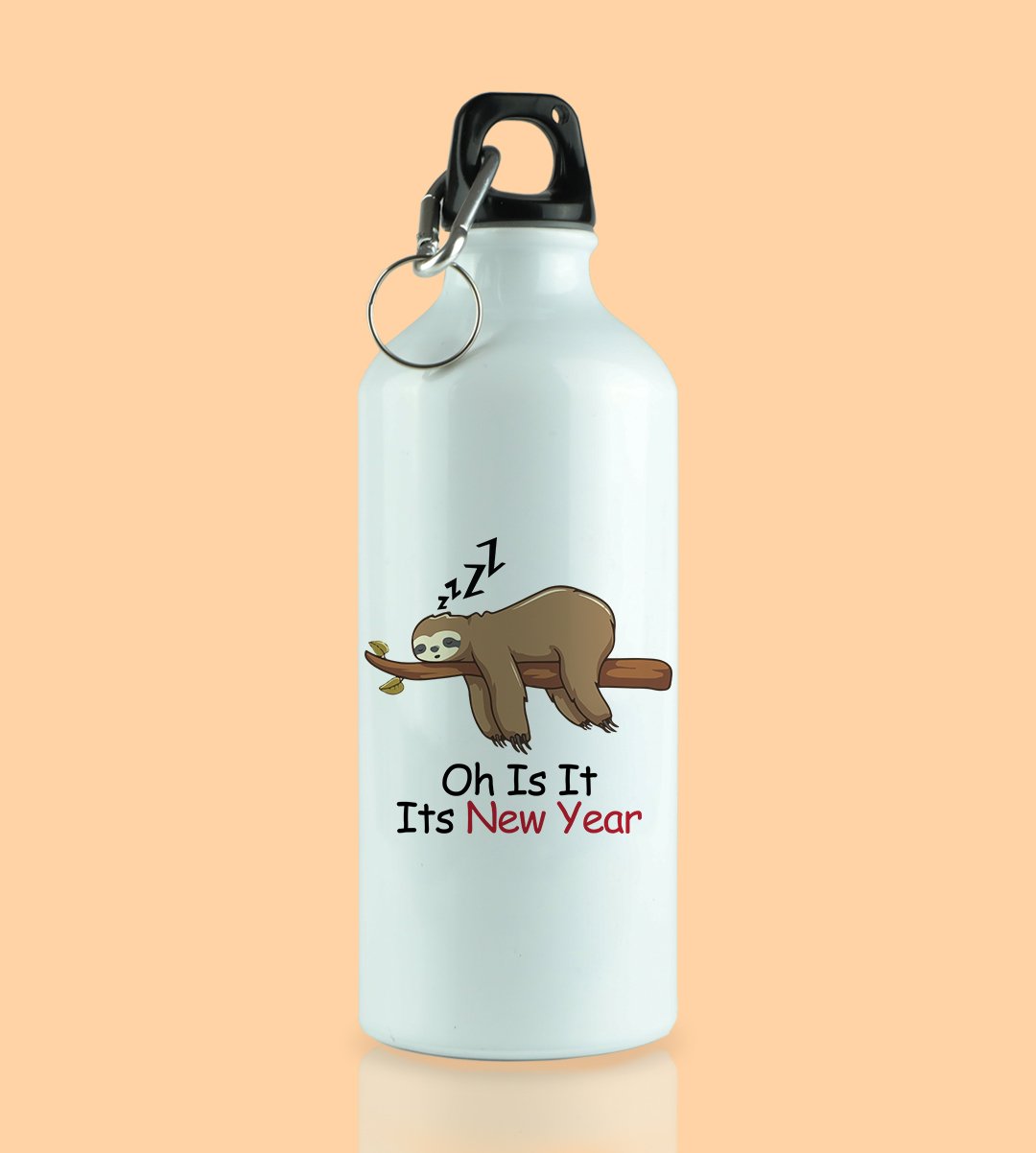 Sloth's New Year, Graphic Printed Sublimated Aluminium Water Bottle
