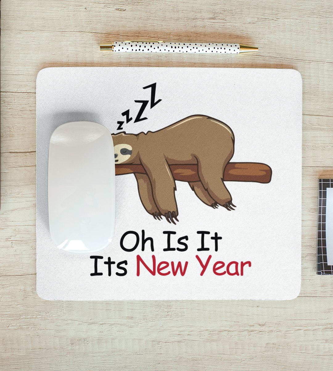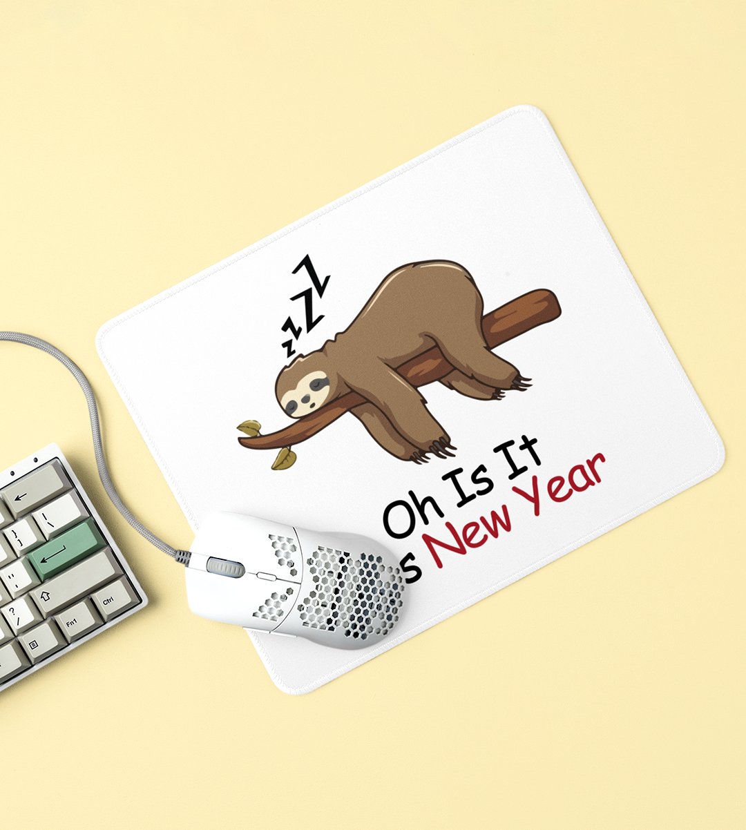 Sloth's New Year, Graphic Printed Sublimated Mouse Pad